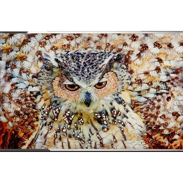 Декоративное панно Gufo – яркий акцент в любом интерьере. Основа из плексигласа со вставками из художественного стекла, кристаллов Swarovski и перламутра. Рама из нержавеющей стали. Ручная работа. Автор: Микель Астольфи (Michele Astolfi).
