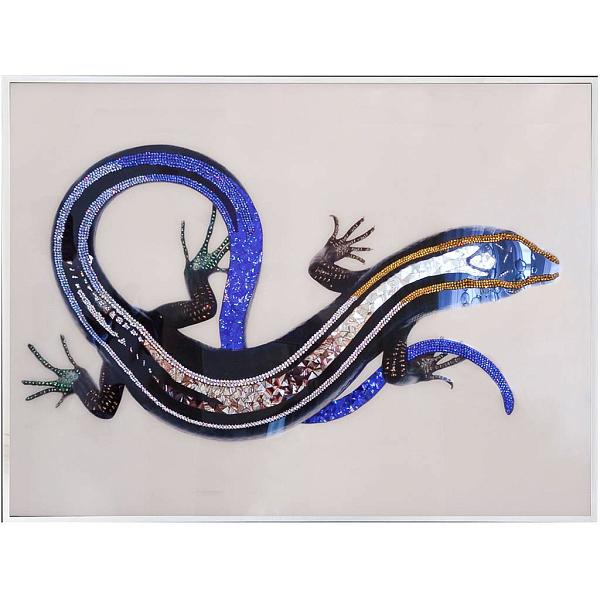 Декоративное панно Lucertola – яркий акцент в любом интерьере. Основа из плексигласа со вставками из художественного стекла, кристаллов Swarovski и перламутра. Рама из нержавеющей стали. Ручная работа. Автор: Микель Астольфи (Michele Astolfi).