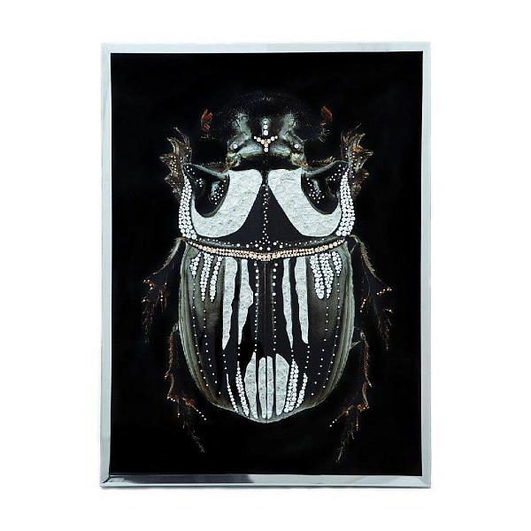 Декоративное панно Scarabeo – яркий акцент в любом интерьере. Основа из плексигласа со вставками из художественного стекла, кристаллов Swarovski и перламутра. Рама из нержавеющей стали. Ручная работа.  Автор: Микель Астольфи (Michele Astolfi).
