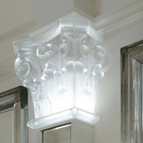 Оригинальный предмет декора – капитель для пилястр из стекла с подсветкой. Внутренняя часть – с пескоструйной обработкой. Модель доступна в разных размерах, может кастомизироваться по желанию заказчика.