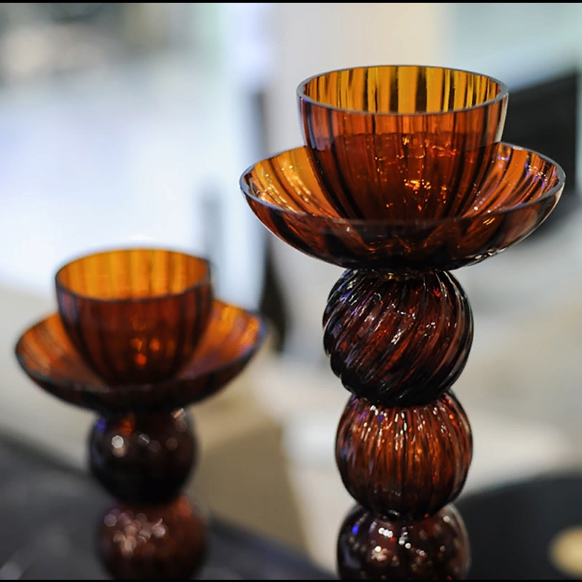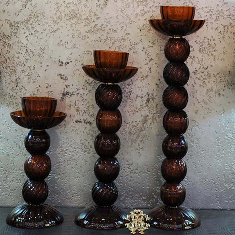 Подсвечник изготовлен из муранского стекла вручную. Цвет бордовый. В коллекции подсвечники трех размеров.