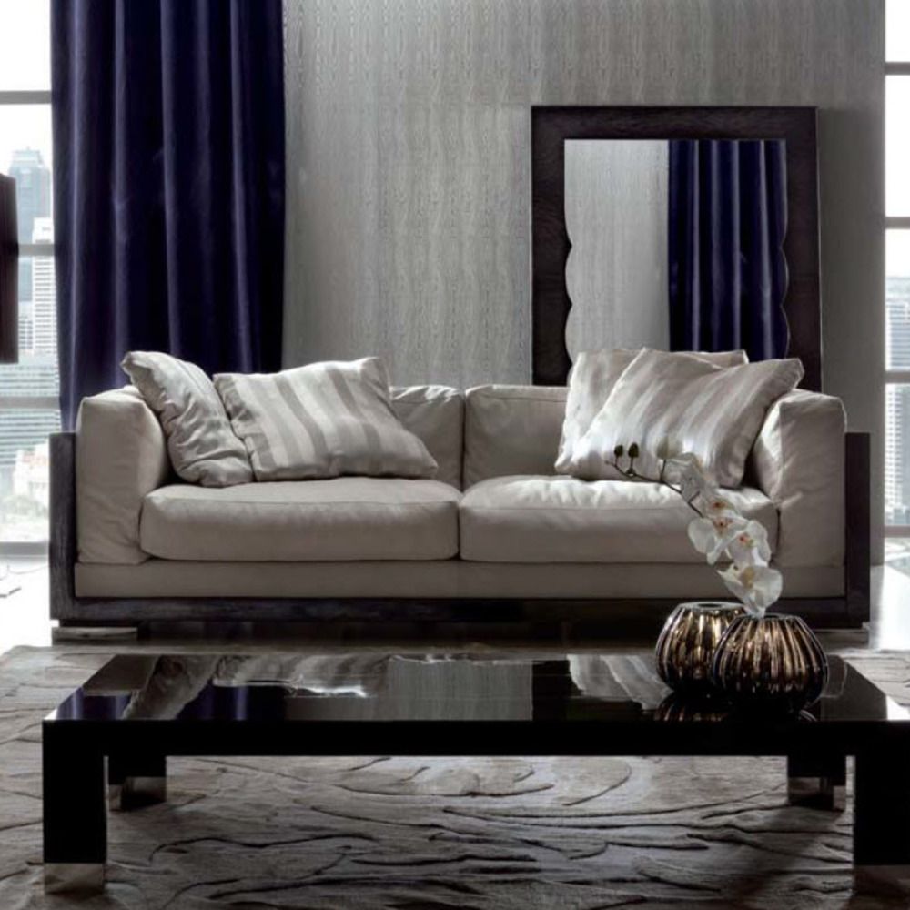 Напольное зеркало в раме, облицованной шпоном из маньчжурского ясеня цвета «мокко» с глянцевым полиэфирным покрытием. Декоративные элементы изготовлены из хромированной нержавеющей стали.