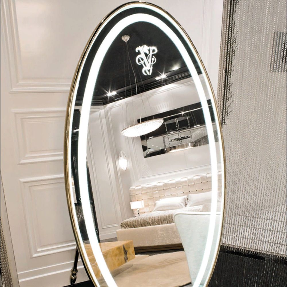 Зеркало в раме из хромированной латуни. Декоративный элемент – логотип Visionnaire. Дизайн: Алессандро Ла Спада (Alessandro La Spada).
