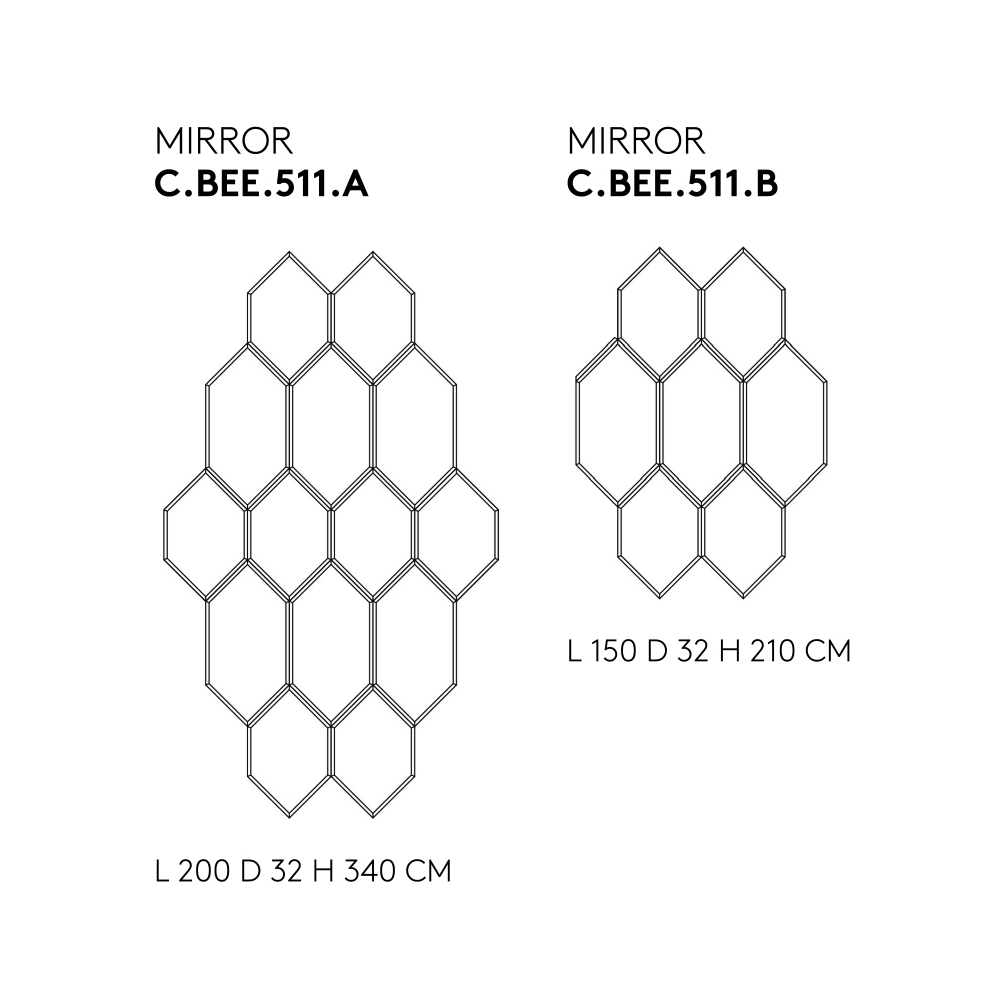 Зеркало BEE — это изысканный предмет интерьера, вдохновлённый природной гармонией пчелиных сот. Его шестиугольные формы создают эффект улья, придавая пространству элегантность и стиль. Логотип Roberto Cavalli, выполненный из литой латуни, становится акцентным элементом, добавляющим зеркалу уникальности и утончённого шарма.