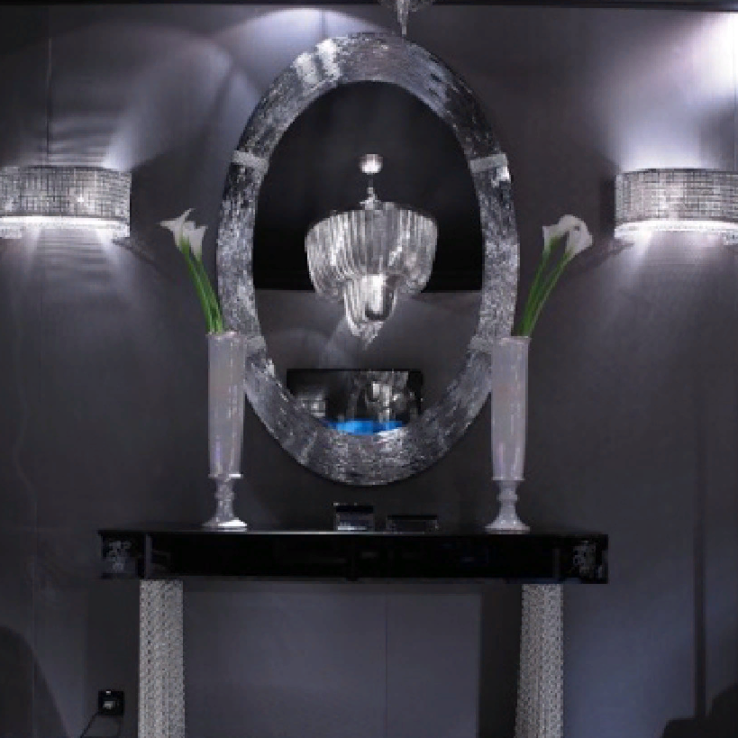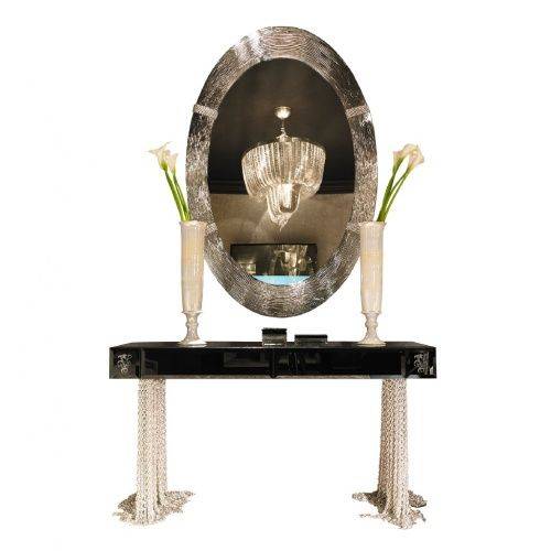 Зеркало с рамой из металлических нитей в технике ювелирного плетения. В комплекте с консолью Fouquet. Дизайнер Мария Серебряная рассказывает, как ей удалось воплотить эту непростую авторскую задумку в сотрудничестве с мастерами фабрики Visionnaire. Дизайн: Мария Серебряная.