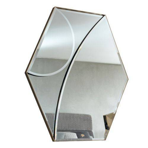 Гексагональное зеркало с 3 скошенными зеркалами. Рама выполнена из хромированной нержавеющей стали светло-золотого цвета.