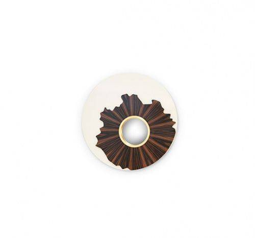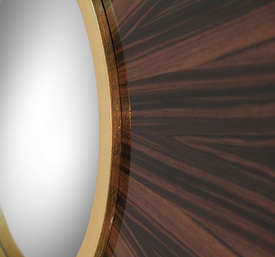 Iris (радужная оболочка) – часть глаза, которая изменяет и контролирует наше восприятие света, форм и цветов. Круглое зеркало Iris раскрывает эти характеристики за счет формы и материалов – лака, шпона палисандра, сусального золота и выпуклого зеркала.