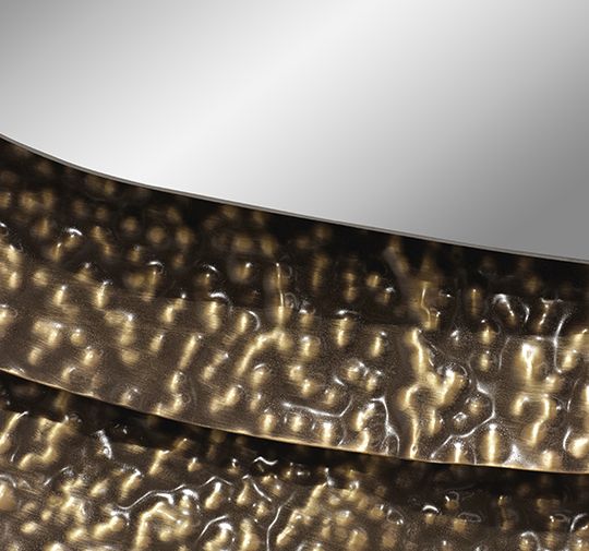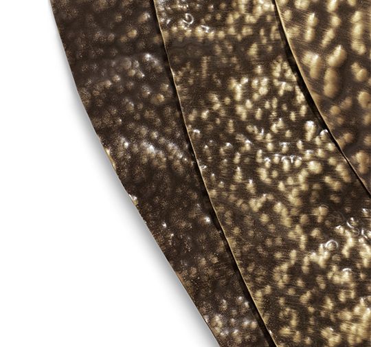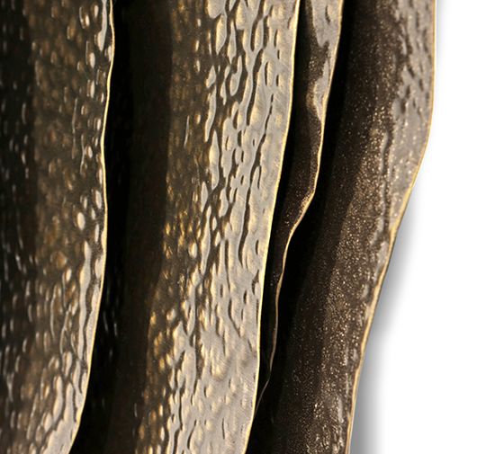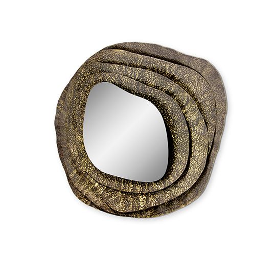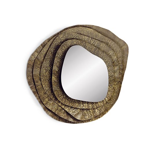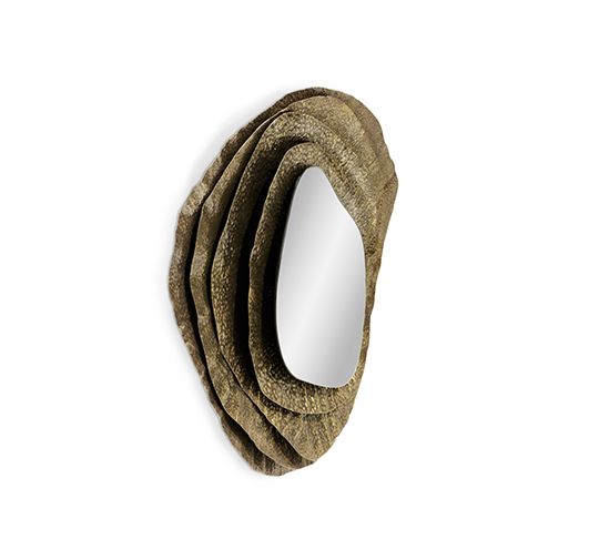 Куми – японская устрица невероятной красоты. Kimi II – круглое настенное зеркало в раме нерегулярной формы из глянцевой кованой латуни с эффектом состаренности.