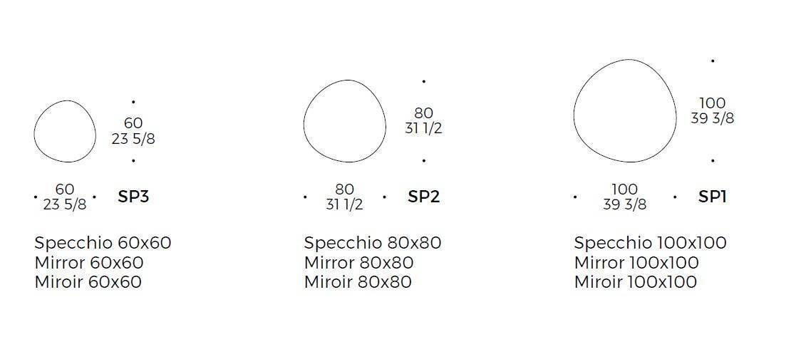 Зеркало Caillou неправильной формы напоминает каплю дождя. Зеркало с полированным краем. Опора толщиной 30 мм, 4 крючка для настенного крепления.
