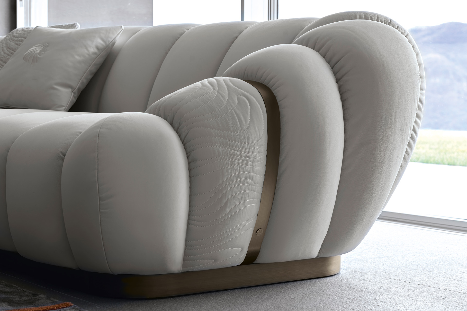 Характерная стёжка “капитоне” делает подлокотники эффектным элементом дизайна, добавляя текстурность и узнаваемый стиль бренда.