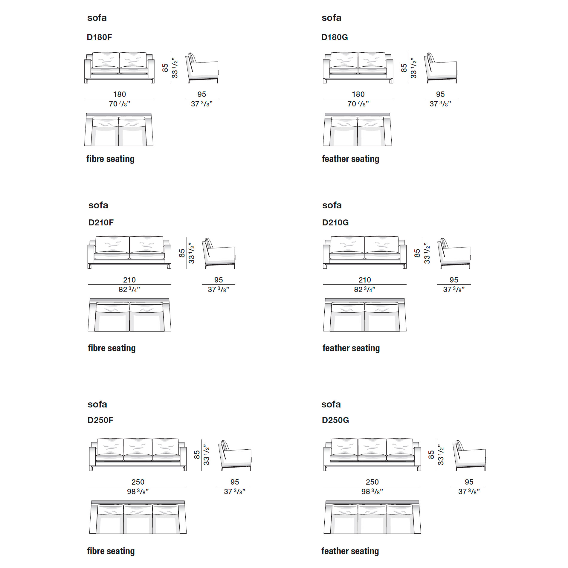 Диван доступен в двух вариантах сидений: с волоконным наполнителем — для лёгкой, упругой посадки и стабильной формы, с наполнителем из пера — для ощущения естественной мягкости и расслабленности.