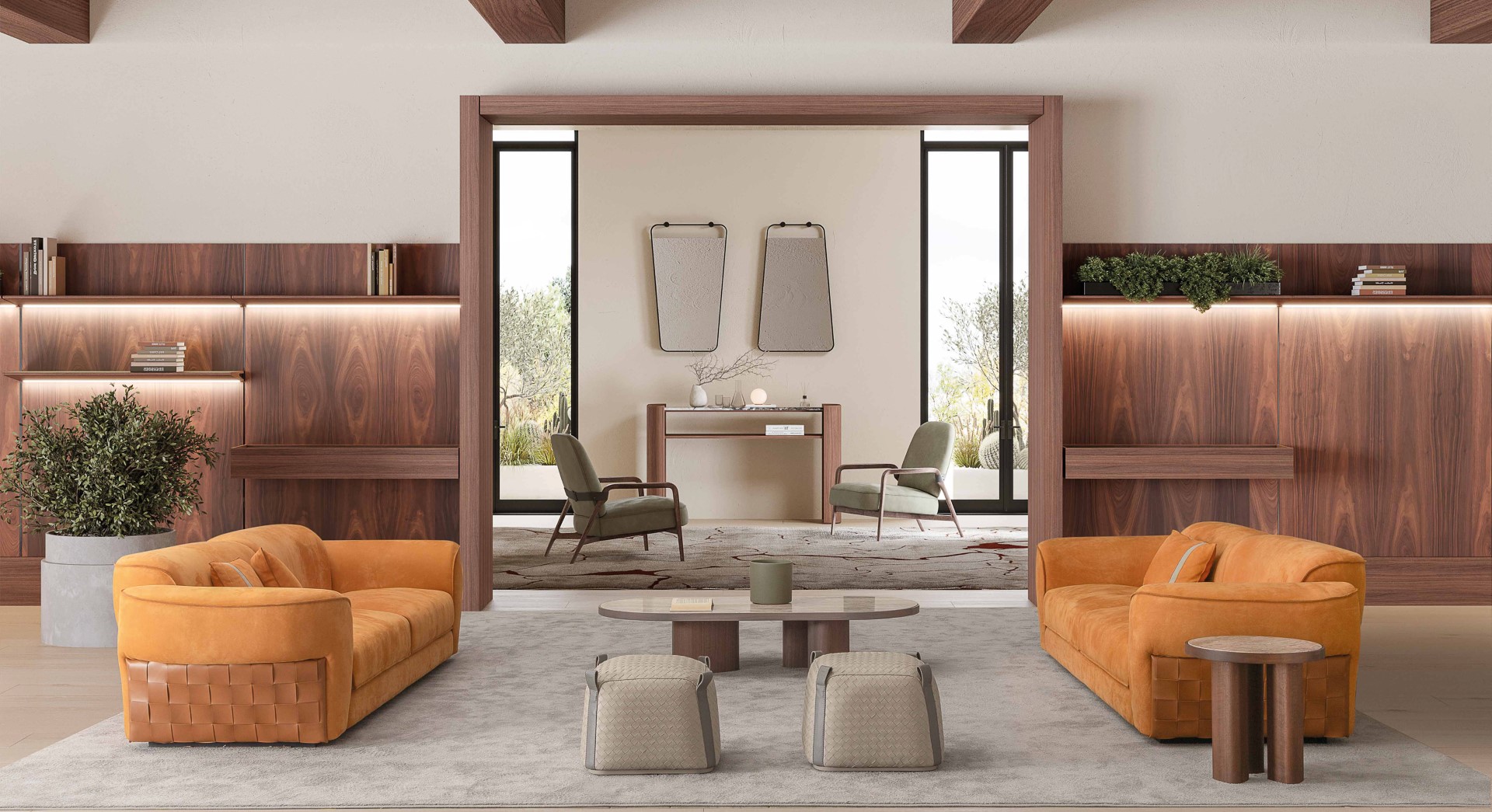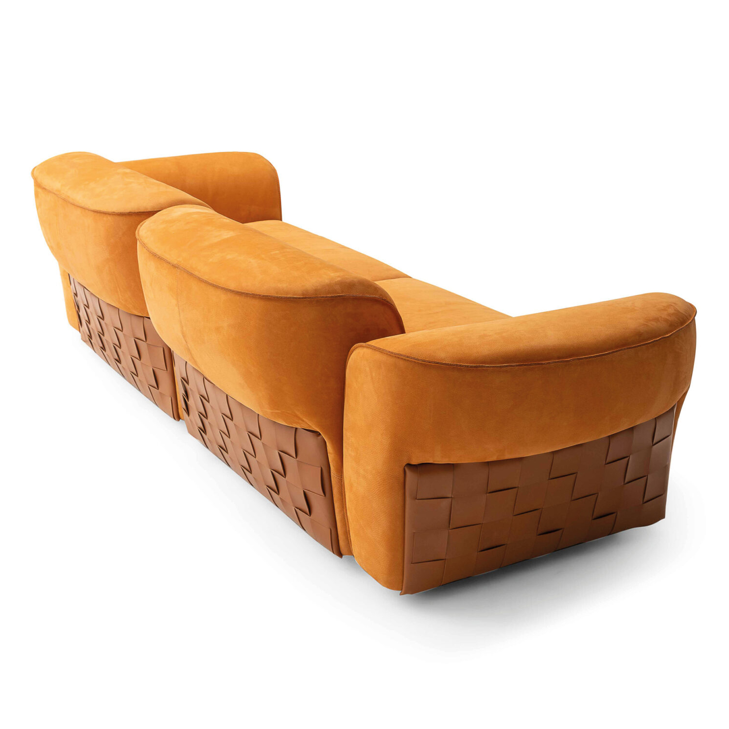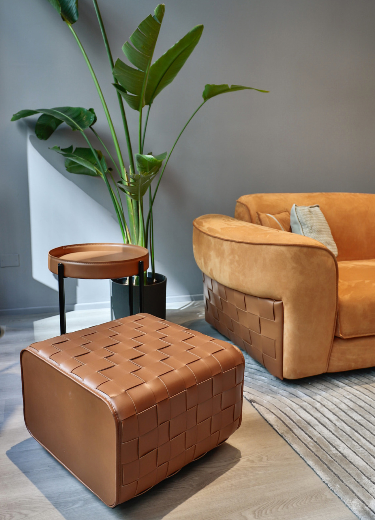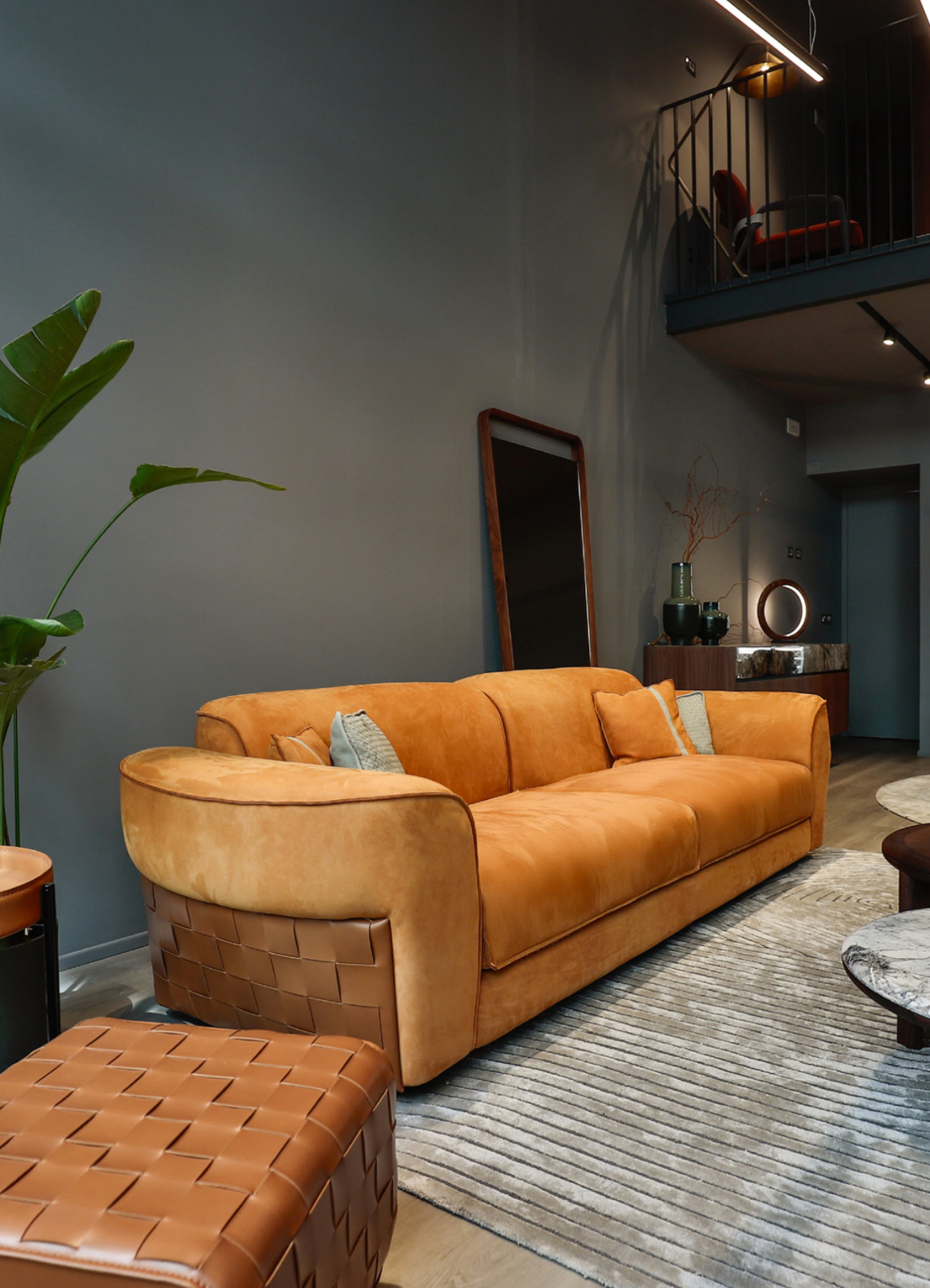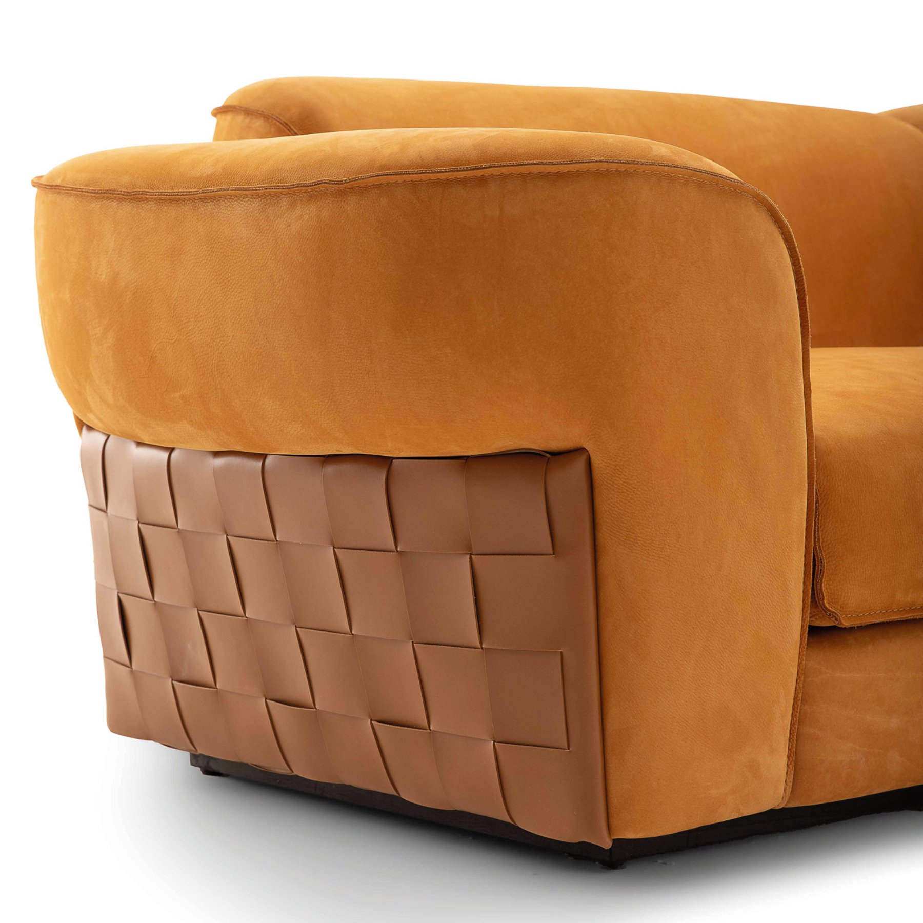 Главная особенность модели — скульптурный подлокотник с боковой вставкой из ручного кожаного плетения. Этот элемент стал символом мастерства Ulivi Salotti: каждое переплетение неповторимо, каждое движение мастера хранит в себе внимание к деталям, страсть и опыт.