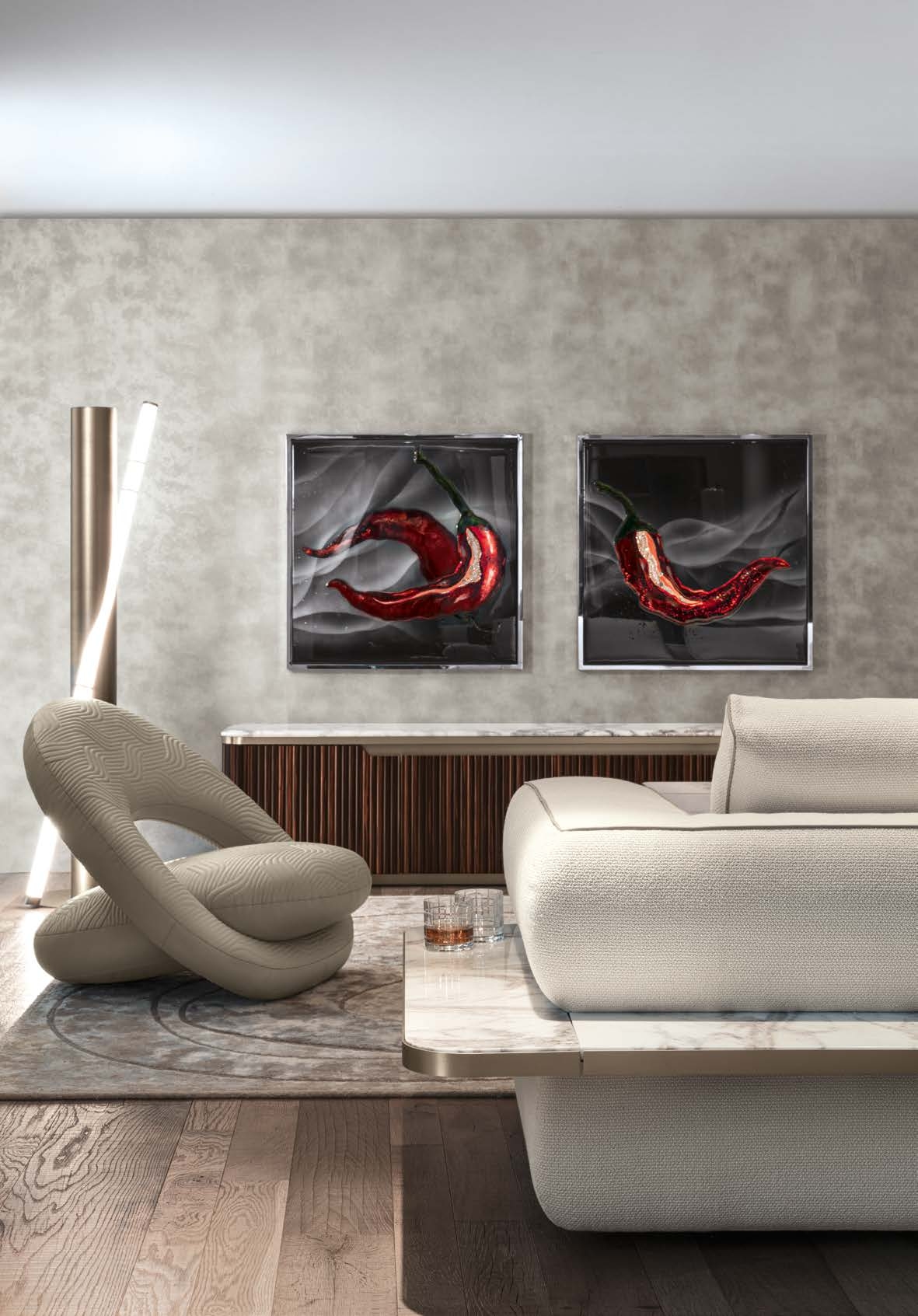 Современная архитектура формы сочетается с тактильной роскошью материалов, создавая атмосферу исключительной утончённости.