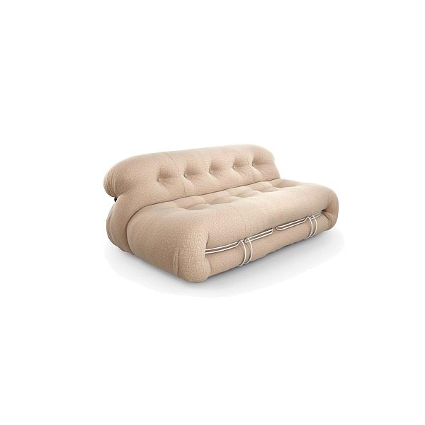 Сама идея комфорта становится диваном. Сориана видит свет в 1969 году благодаря интуиции Afra и Tobia Scarpa, призванной изменить историю обивки: воспользоваться новыми методами формования пенополиуретана, чтобы создать диван, который впервые не нуждается в внутренней поддержке, но принимает форму из тисков металлической конструкции, которая его приветствует. Играемый на формальном/неформальном балансе, приветствующий и открытый для новых ритуалов, Сориана награжден в 1970 году золотым компасом как шедевр сложности, достигнутый с помощью простых инструментов. Внутренняя прокладка на основе микрошариков BioFoam®, биопластика растительного происхождения, является результатом модернизации, разработанной Cassina и Tobia Scarpa в рамках проекта Cassina LAB для содействия благополучию и устойчивому дизайну. Комфорт сиденья еще больше усиливается благодаря набивке из выдувного волокна, изготовленной из 100% переработанного ПЭТ от Plastic Bank®.