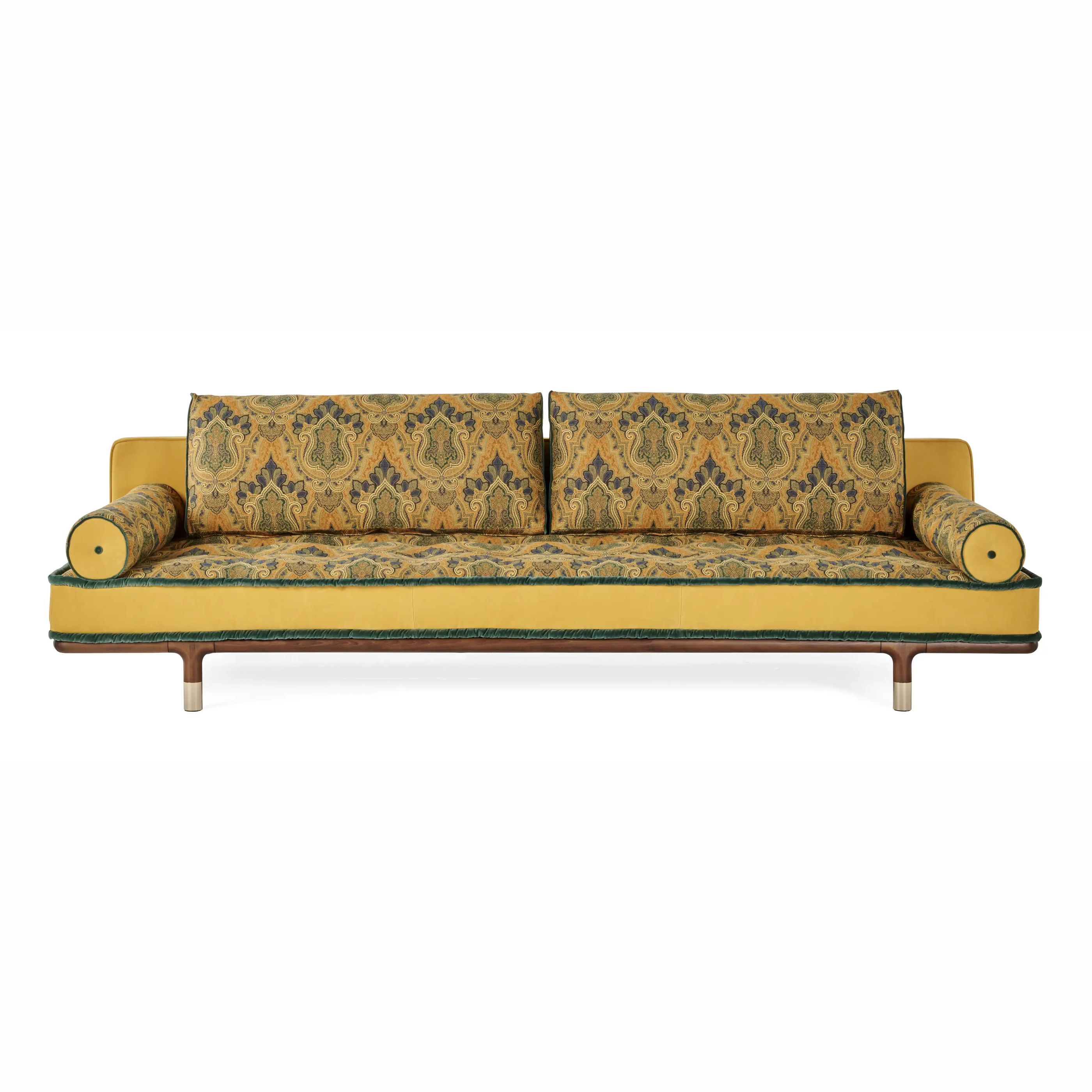 Диван Woodstock от ETRO Home Interiors — это воплощение свободного, неторопливого образа жизни, пропитанного путешествиями, этническими мотивами и итальянской ремесленной культурой. Плавные линии и тактильная выразительность материалов создают атмосферу уюта, а утончённые элементы отделки — латунные наконечники, канты, декоративные пуговицы — придают образу благородство и индивидуальность.