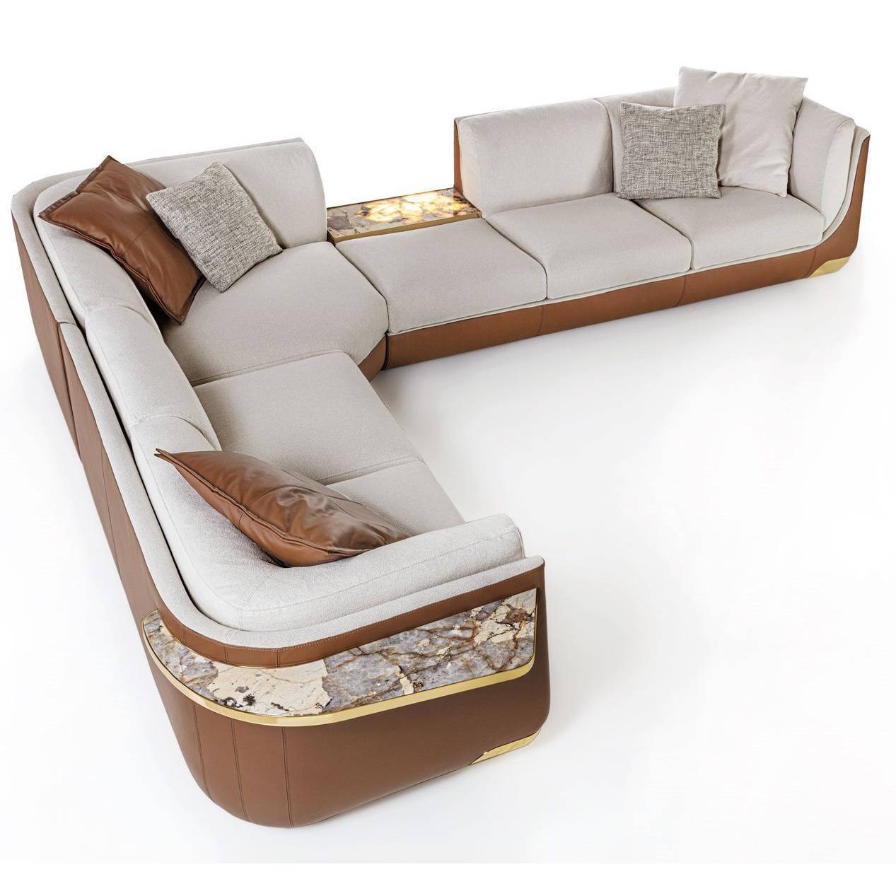 Модульный диван со встроенным узким столиком Bravery Longhi. В наличии в контрастной двухцветной отделке.