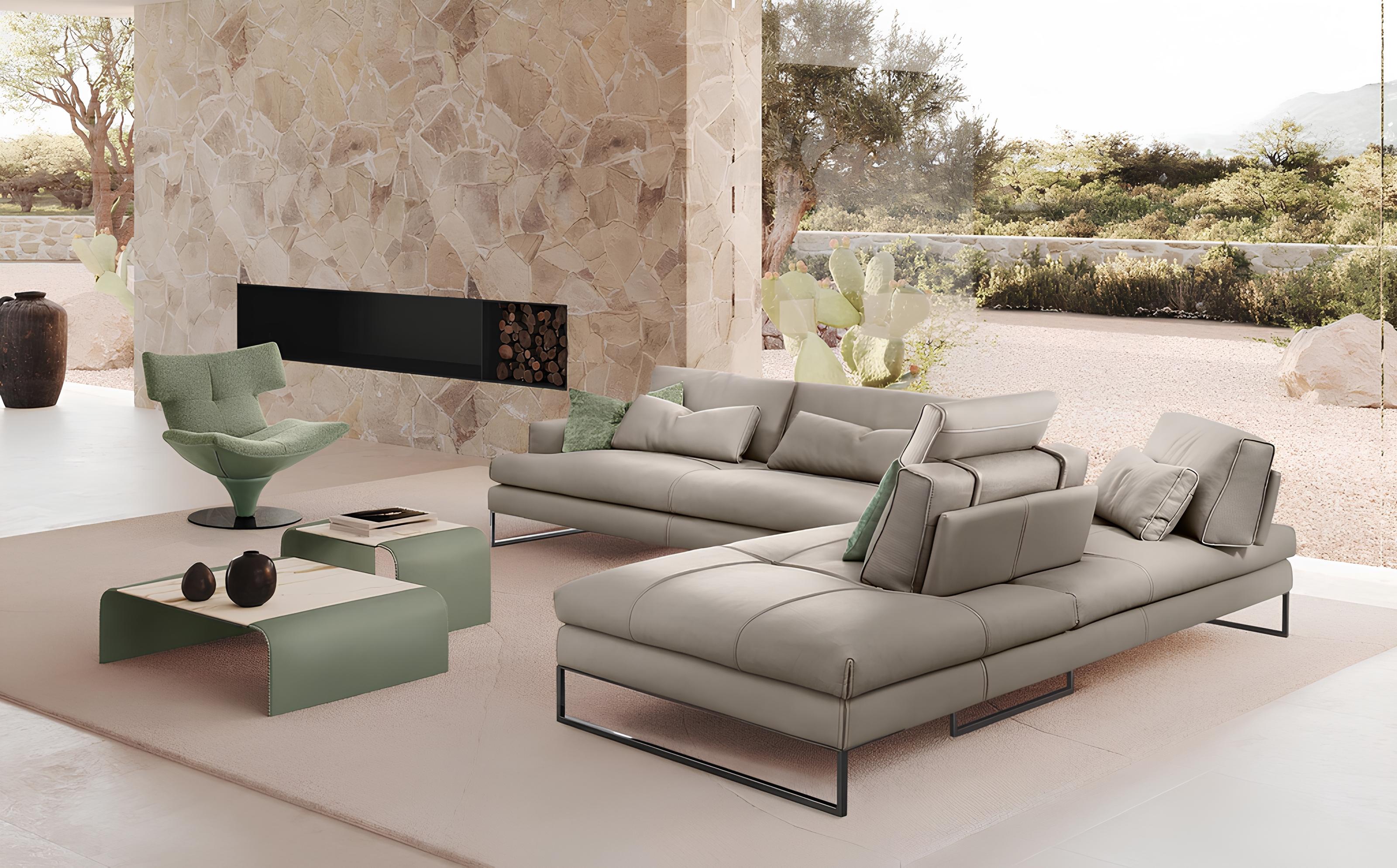 Благодаря гибкости компоновки и богатой палитре кожи, Sunset легко адаптируется к любому пространству — от светлых минималистичных гостиных до драматичных, насыщенных интерьеров с характером.