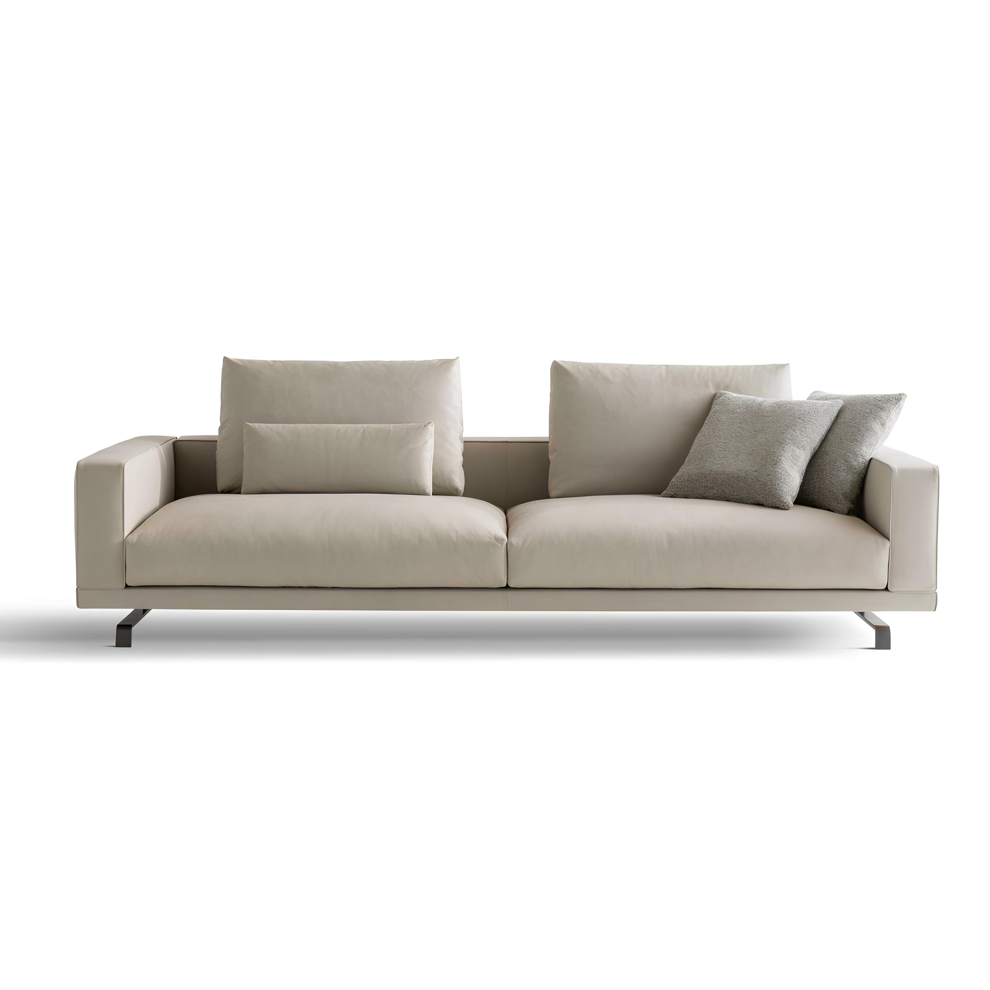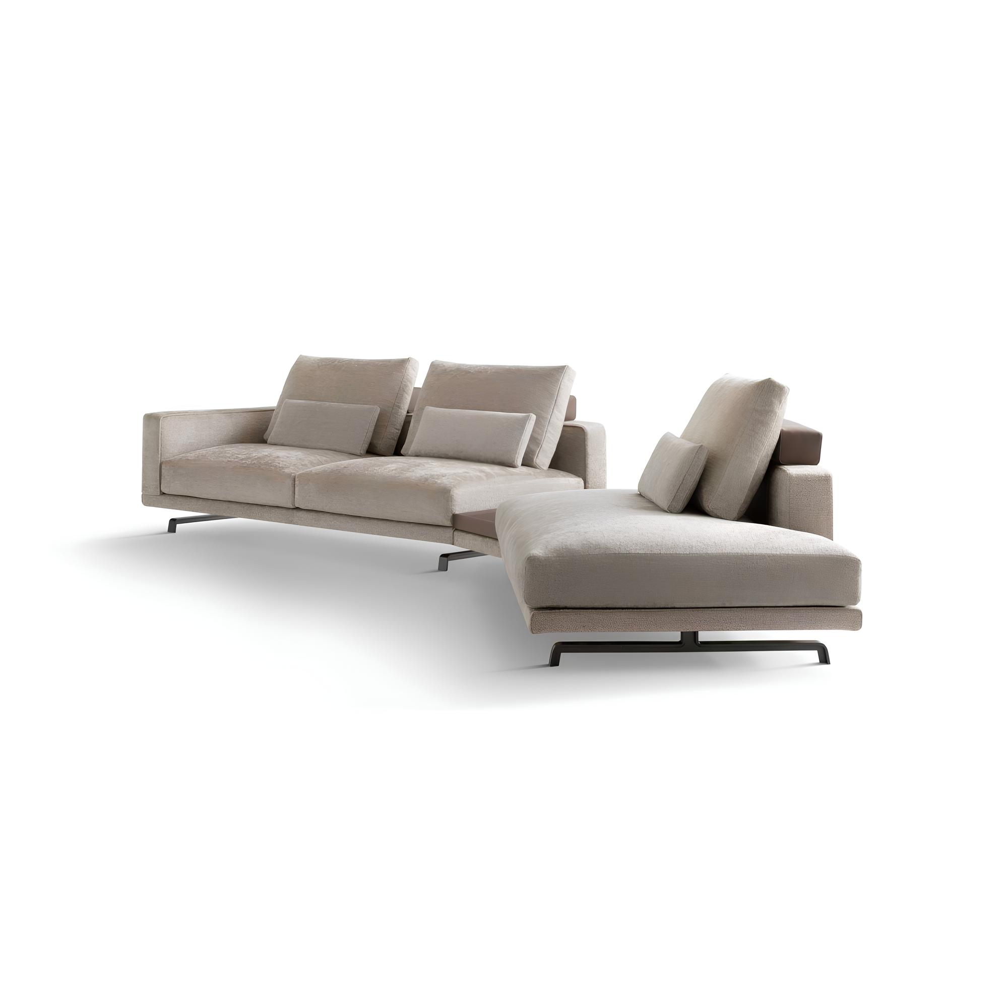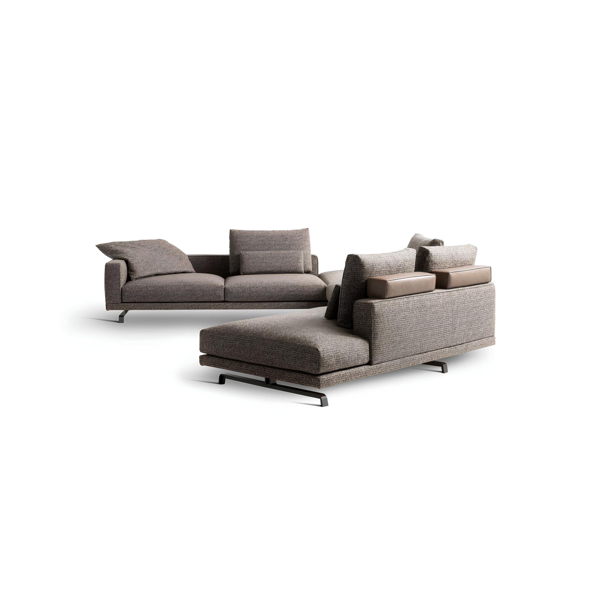 Octave — это минимализм в его совершенном воплощении. Низкие прямоугольные спинки и широкие сиденья, обитые премиальной тканью или натуральной кожей, формируют изысканную композицию строгих линий и графичных объёмов. Тонкие опоры из экструдированной стали, острые и изящные, словно лезвия, визуально приподнимают массивные модули, придавая конструкции лёгкость, динамику и характерный современный силуэт.