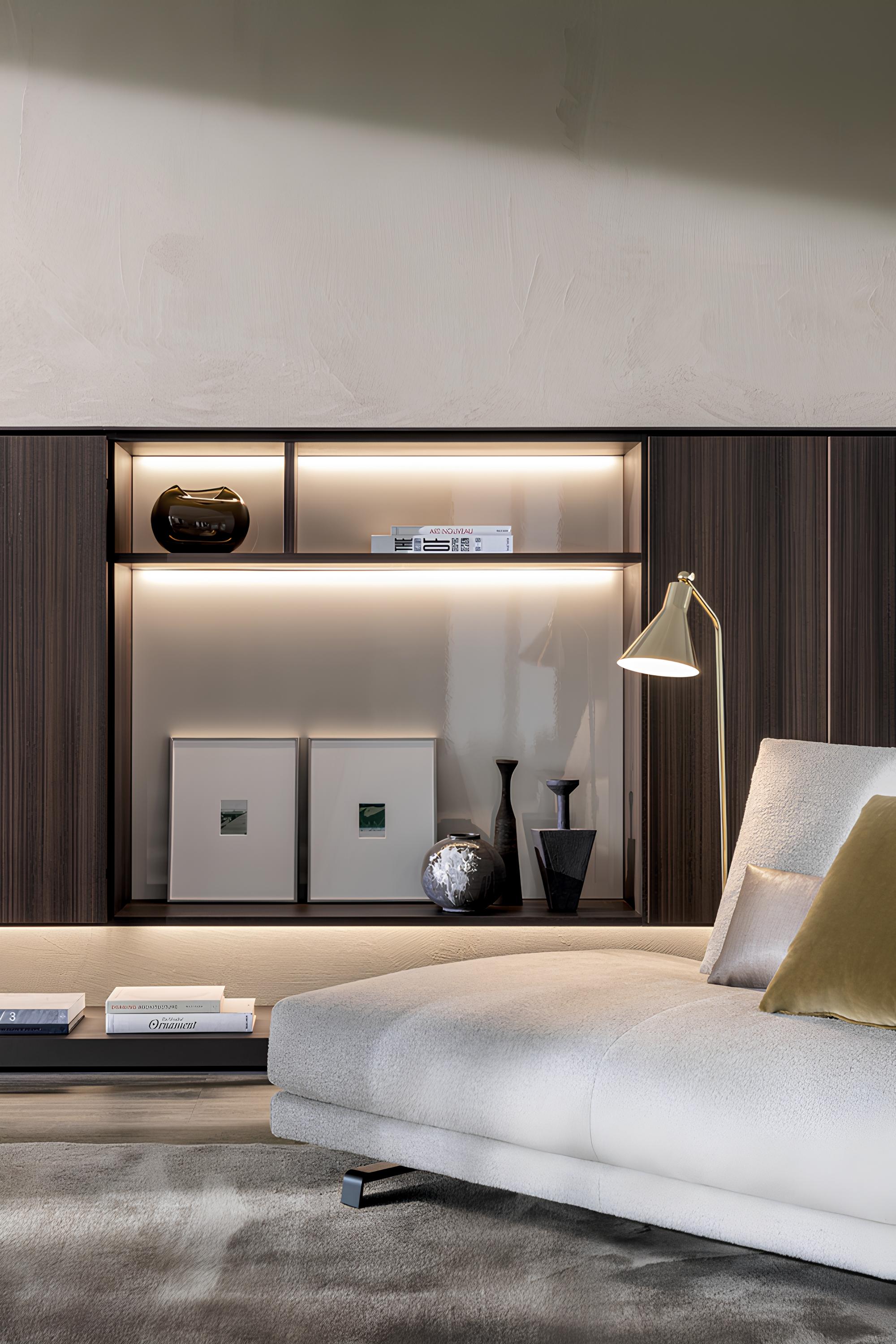 Модульный диван Octave от Molteni&C — это яркий архитектурный акцент. Каждая секция системы тщательно выверена по пропорциям и формам, благодаря чему модули легко комбинируются между собой, образуя цельную, выразительную композицию. Такой подход превращает диван не только в функциональный элемент интерьера, но и в эстетический центр пространства, отражающий современное понимание элегантности и стиля.