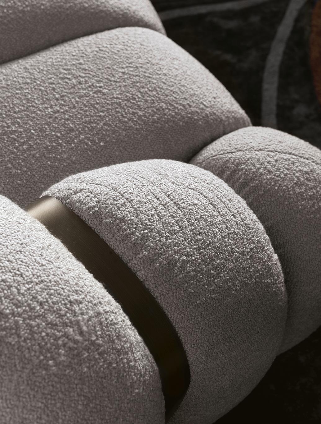 Модульный диван Tresor отличается сбалансированным сочетанием геометрии и мягкости, что делает его визуально выразительным и при этом невероятно уютным. Его чистые линии и изысканные пропорции создают архитектурный ритм, а декоративная прострочка на сидениях и боковых панелях подчеркивает скульптурный характер модели.