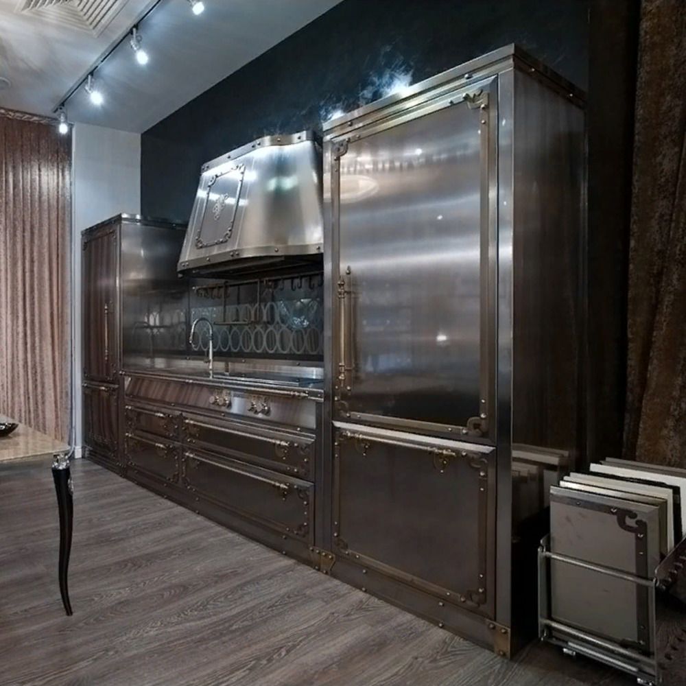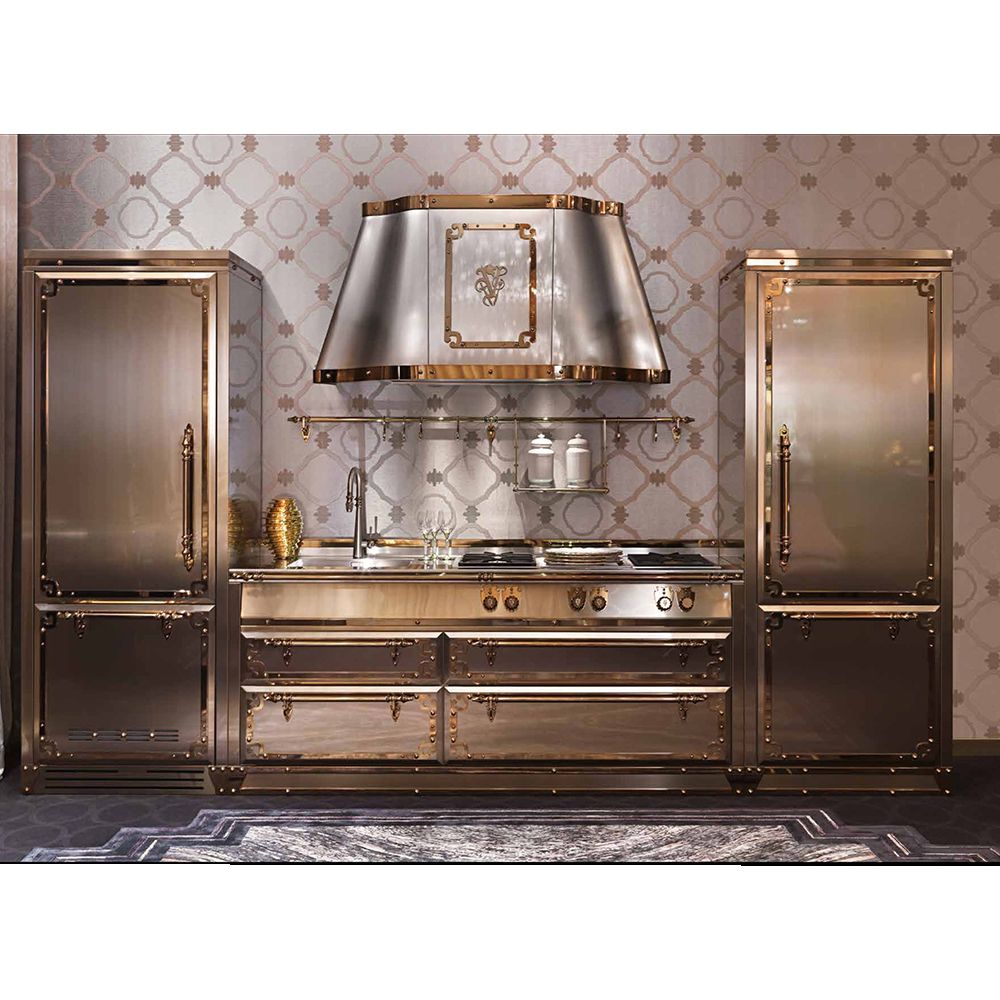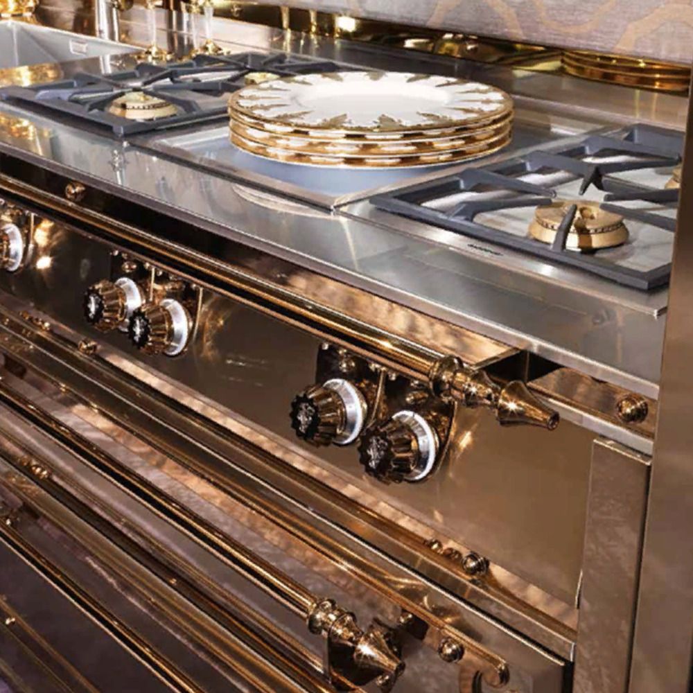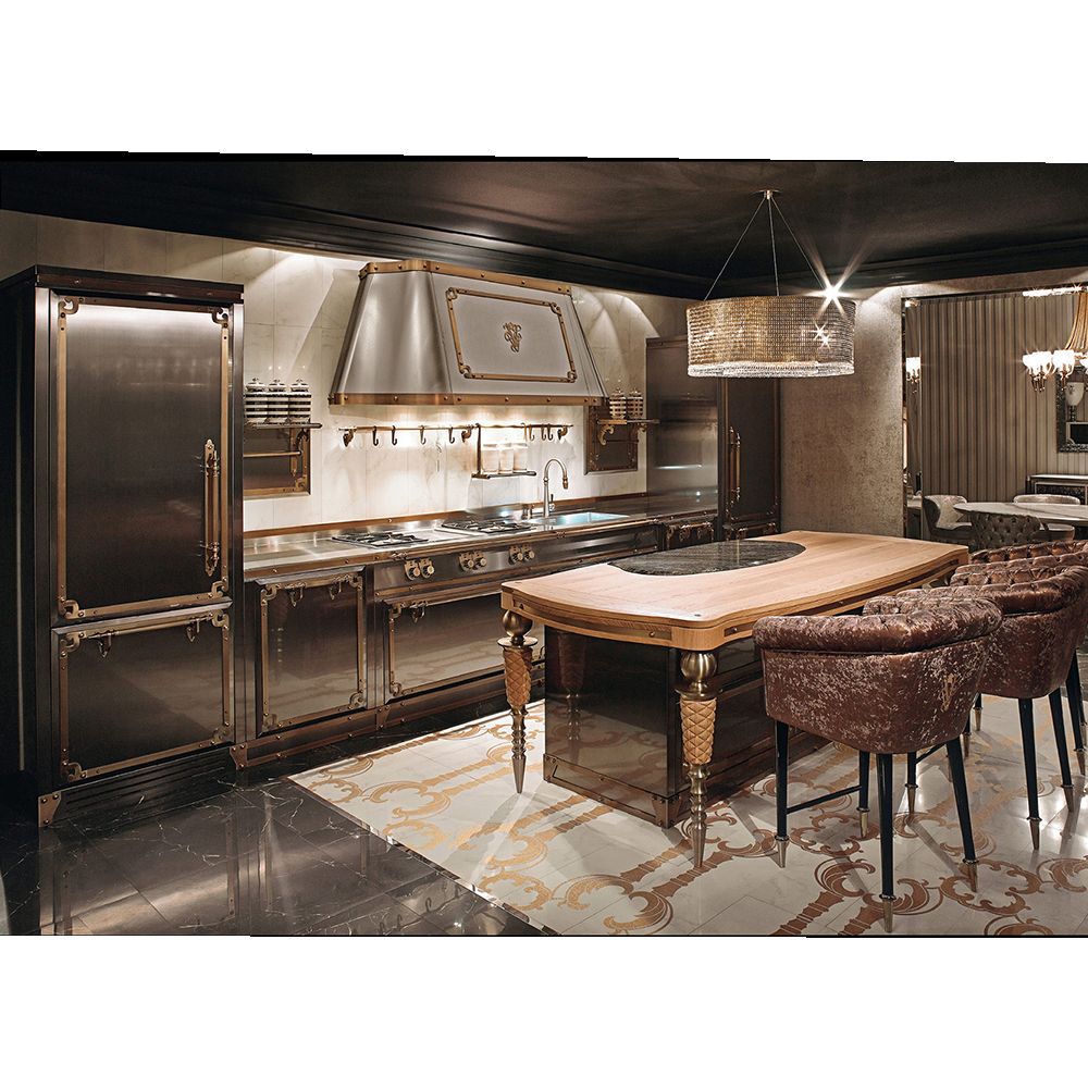 Кухня отличается сверхэргономичным дизайном и невероятно красивой игрой света и цвета металлических поверхностей, отделана полированной бронзой. Это лучший вариант для организации в вашем доме особой зоны, наполненной динамичной атмосферой под знаком легендарного бренда Visionnaire.