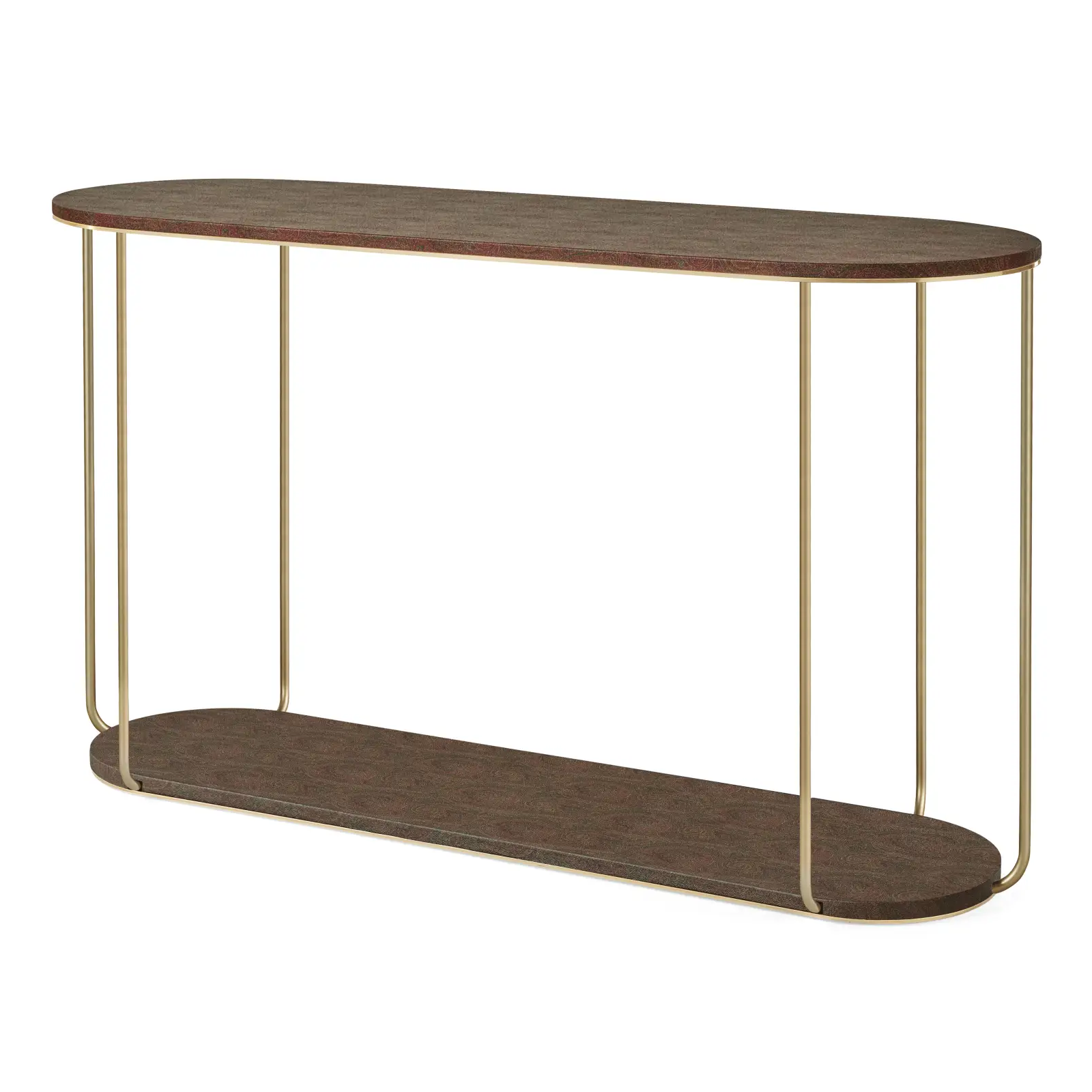 Консоль Double отражает эстетику изысканного минимализма, где строгие формы подчеркнуты выразительными материалами. Лёгкая металлическая конструкция с тонкими опорами формирует визуально невесомый образ, подчёркивающий элегантность модели.