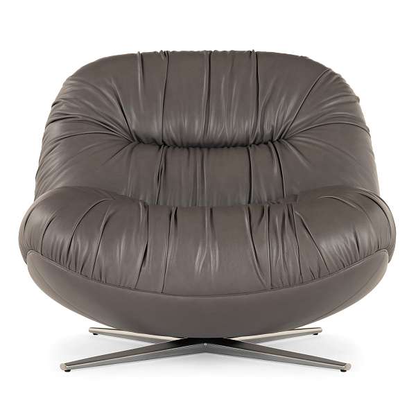 Центральная вращающаяся база выполнена из нержавеющей стали конической и овальной формы. Доступны варианты с зеркальной полировкой или сатинированной поверхностью — в соответствии с выбором отделок из фирменной палитры металлических финишей Visionnaire. Такая конструкция обеспечивает не только визуальную лёгкость, но и функциональность, позволяя легко поворачиваться без изменения положения кресла.