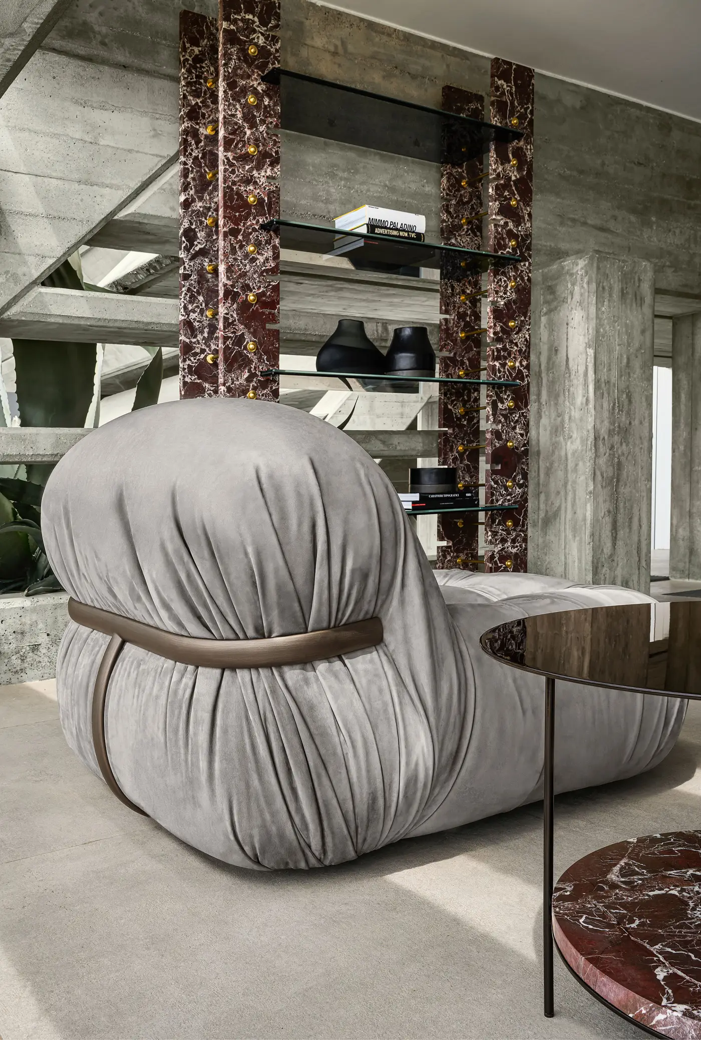 Кресло Brompton от Gianfranco Ferré Home объединяет комфорт и современную эстетику: мягкие линии и текстурная обивка создают уют, а металлический акцент на спинке придаёт динамику и делает кресло выразительным центром интерьера.