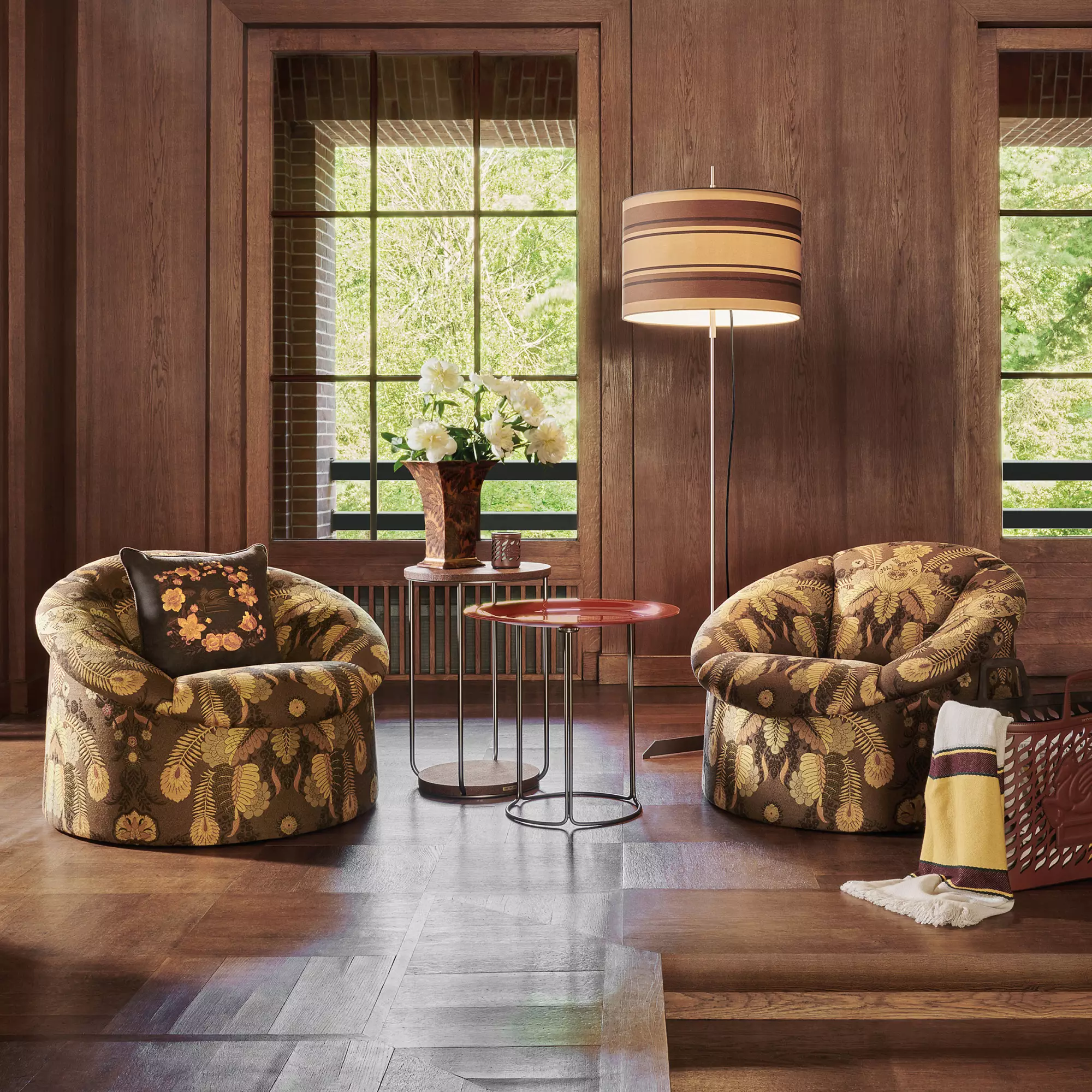 Кресло Dahlia органично вписывается в различные интерьерные сценарии. В гостиных создаёт атмосферу уюта и расслабленности, в спальнях становится местом для отдыха и уединения. В современных пространствах выступает стильным акцентом минималистичной эстетики, а в декоративных интерьерах отражает философию ETRO с её смелым использованием цвета и тканей.