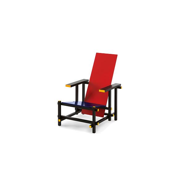 Скульптурное сиденье с чистой и рационалистической формой, это кресло стало подлинным манифестом неопластицизма, подхваченного голландским движением De Stijl в 1917 году. Это мировоззрение разделял Пит Мондрайн, целью которого был поиск сущностной природы вещей в сочетании с гармоничным сочетанием цветов и использованием прямых углов. Ритвельд создал свои первые прототипы в 1918 году, выражая философию организации пространства с использованием одинаковых цветов для схожих компонентов. Позже он применил тот же подход для разделения конструктивных элементов в соответствии с их назначением. Таким образом, основание было черным, а сиденья - цветными. Как следствие, название модели изменилось: с кресла-ламели на красное и синее.