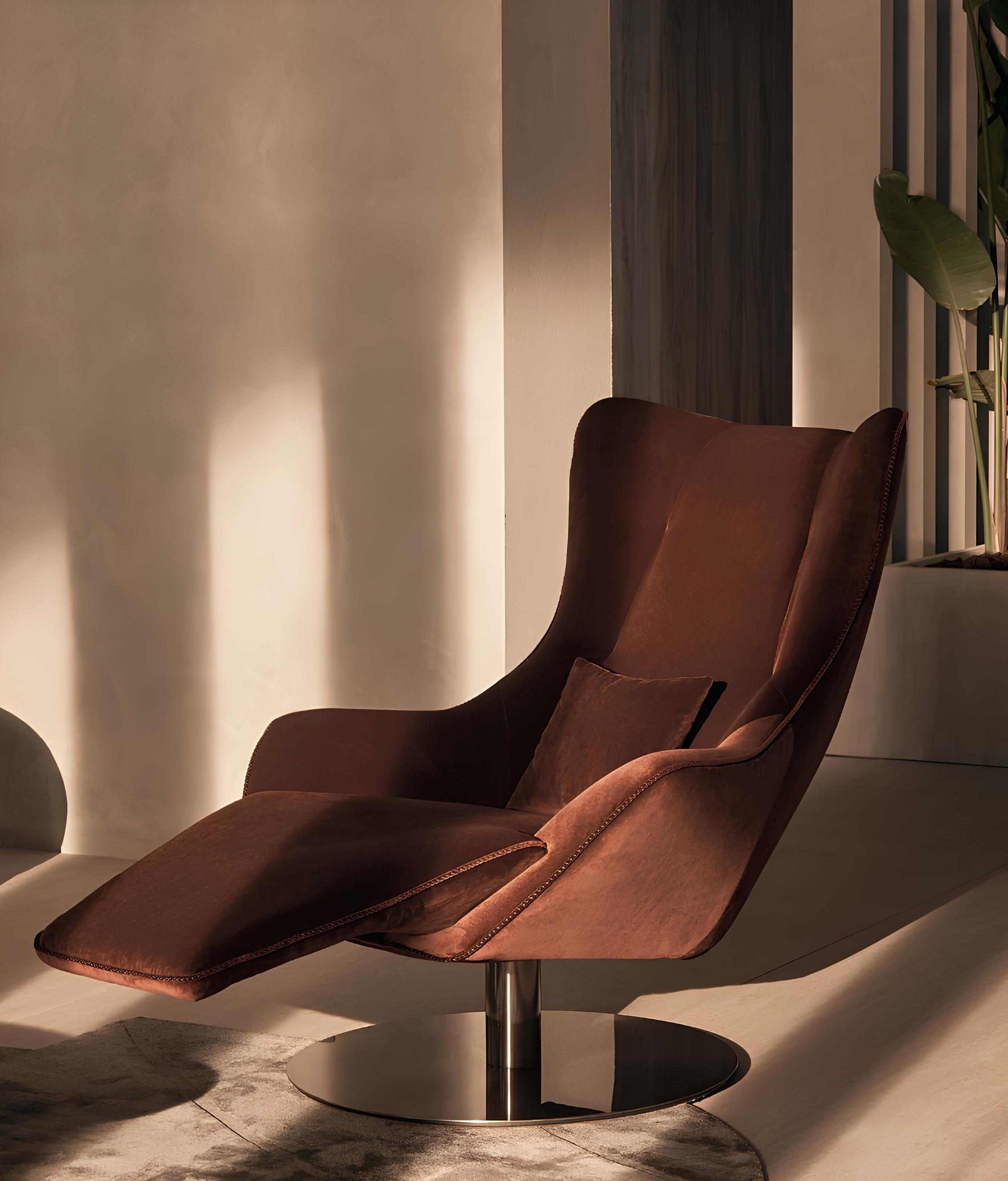 Кресло-шезлонг Selfless от Visionnaire Home — это дизайнерская интерпретация идеи отдыха как роскоши. Его форма словно приглашает замедлиться и раствориться в моменте. Шезлонг дарит не только физический комфорт, но и эмоциональное переживание, превращаясь в объект, который задаёт атмосферу пространства.
