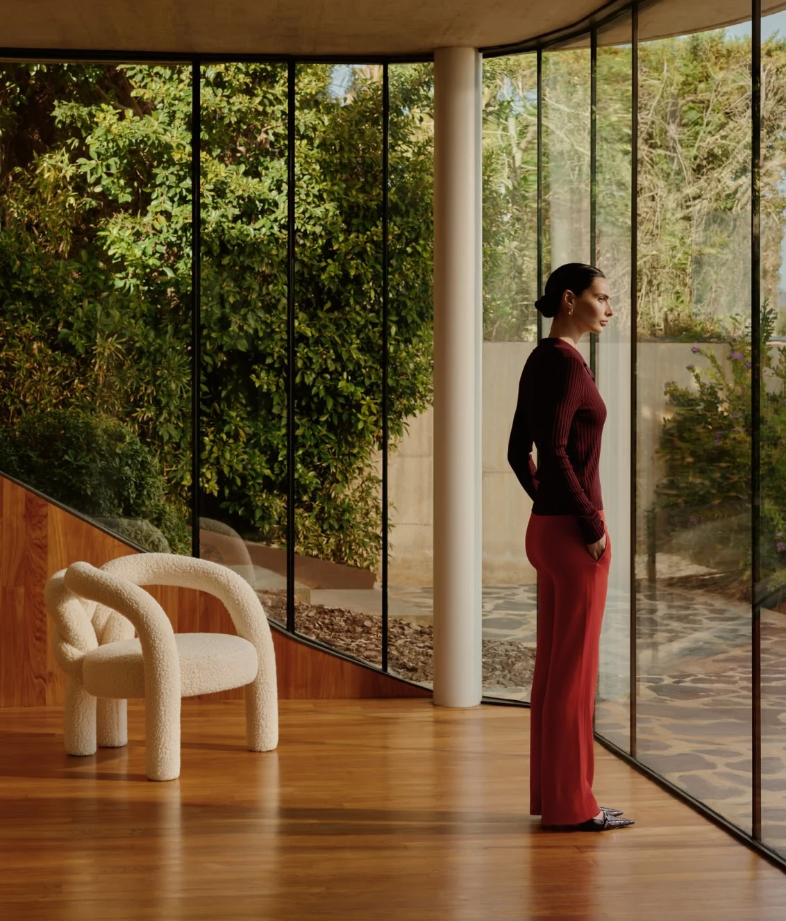 Обивка — это эластичная ткань, тщательно подобранная из эксклюзивной коллекции эластичных материалов Visionnaire. Она плотно охватывает мягкий объем, подчёркивая органические изгибы кресла и создавая визуальный эффект натяжения, схожий с эстетикой традиционного шибари — когда верёвка гармонично взаимодействует с телом.