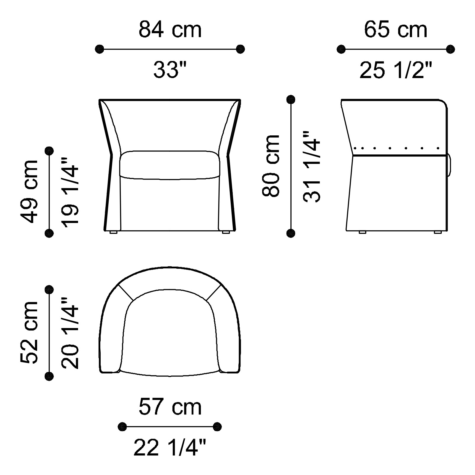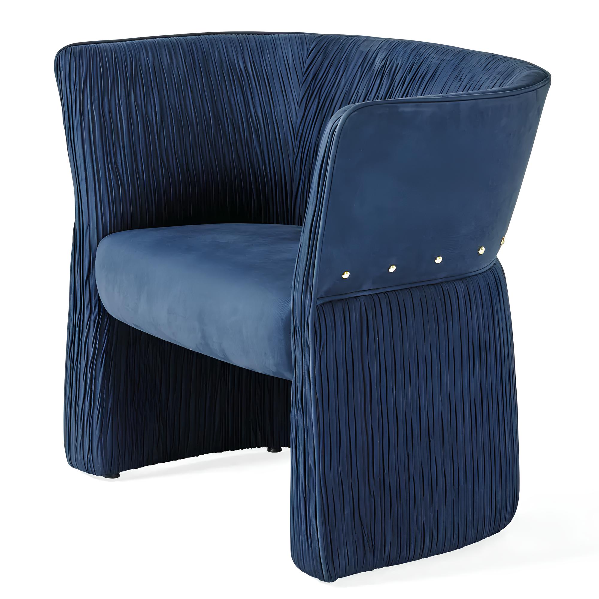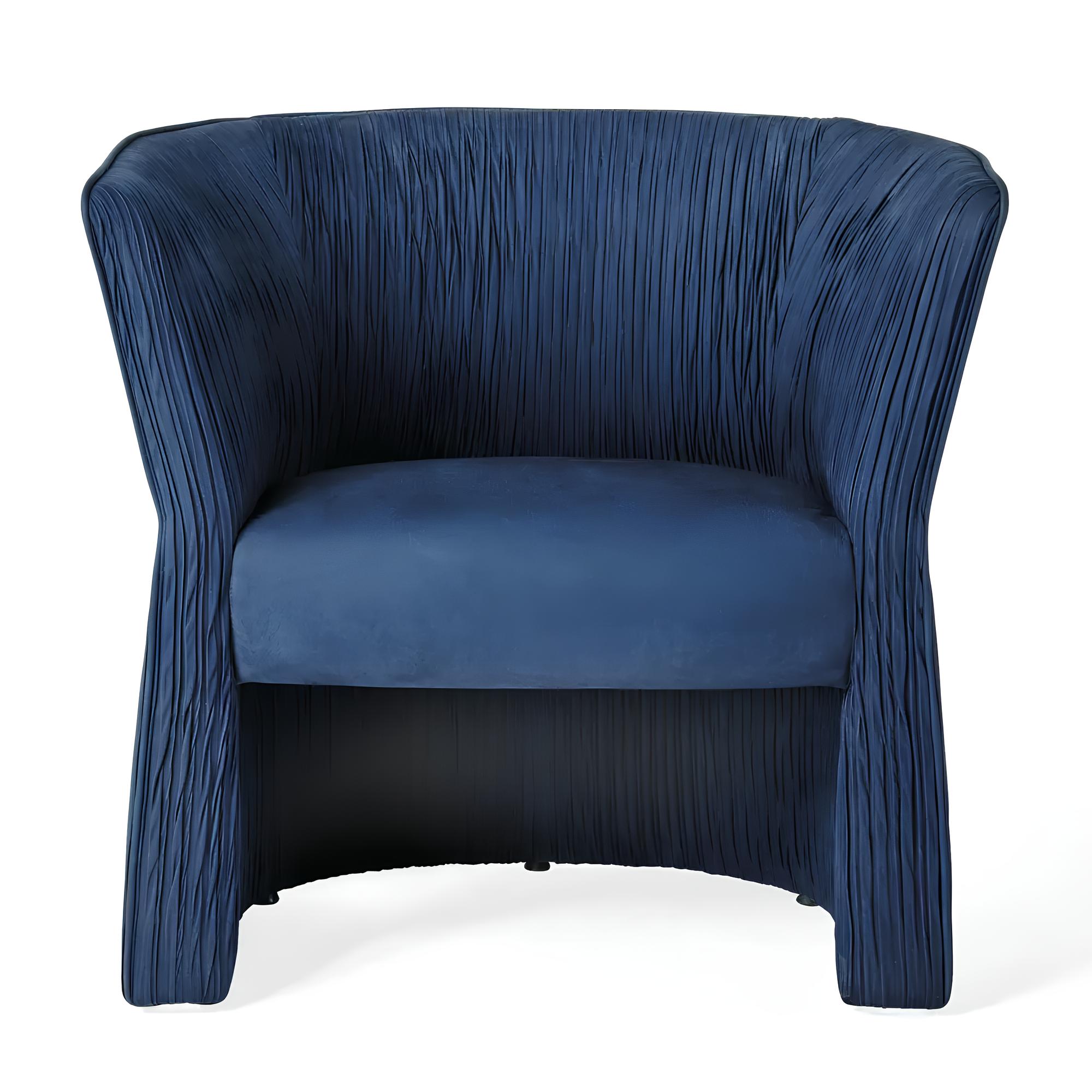 Внутренняя часть спинки и нижний обод кресла могут быть оформлены плиссировкой canneté (опция, доступная только в кожаной версии) — сложный декоративный приём, придающий дополнительную текстуру и подчёркивающий премиальный уровень отделки.