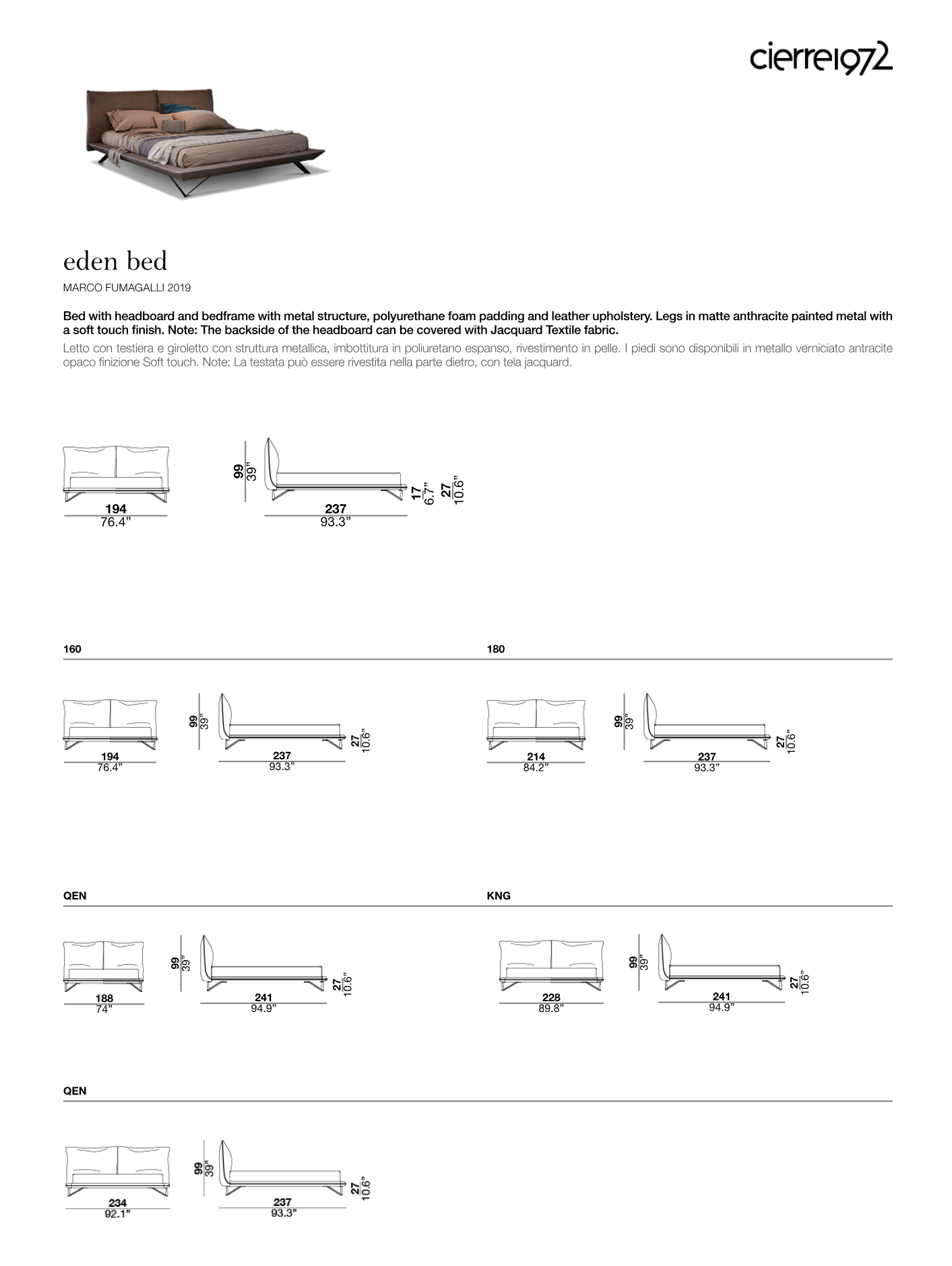 Купить Кровать EDEN BED Cierre1972 в интернет-магазине Casa Ricca.