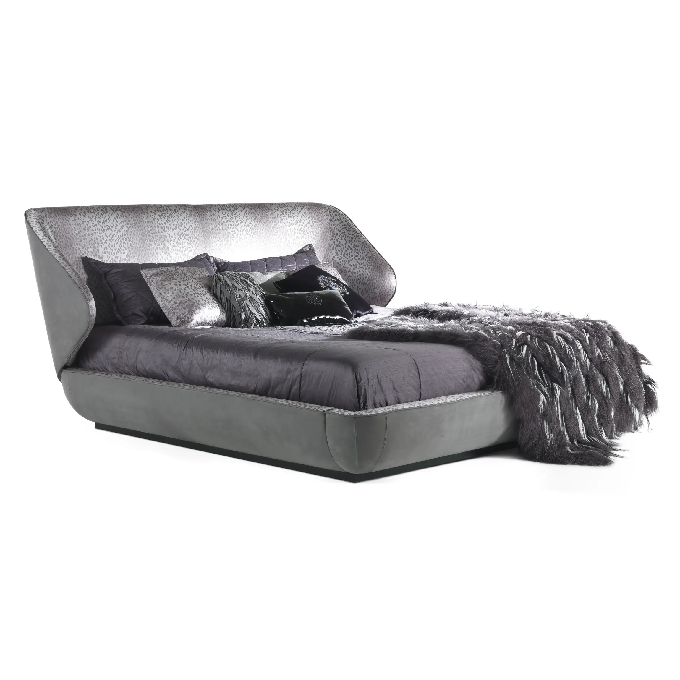 Обивка доступна в широком спектре тканей и натуральной кожи из коллекции Roberto Cavalli Home Interiors: от гладких премиальных текстилей до фактурной кожи, добавляющей кровати чувственности и выразительности. Такая вариативность позволяет адаптировать модель под любой интерьер — от сдержанной современной роскоши до более эффектных и насыщенных стилистических решений.