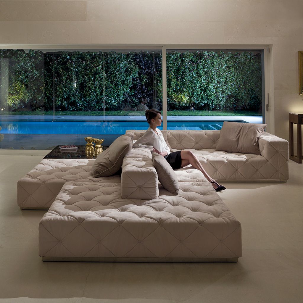 Несущий каркас из древесины ели покрыт вспененным полиуретаном высочайшей плотности и различной жесткости. Обивка из кожи и ткани сочетается с материалом Dacron и имеет отделку капитоне с пуговицами, покрытыми таким же материалом, как и обивка, или с кристаллами «Swarovski». Сиденье дивана имеет два варианта глубины. Серия Must дополнилась новыми размерами и вариантами отделки. Все диваны и боковые секции могут оснащаться как традиционным высоким подлокотником, так и его низким вариантом с одной или с обеих сторон для создания красивых объемов как в композиции, так и по отдельности. Новый островной элемент в сочетании с различными сиденьями позволяет
