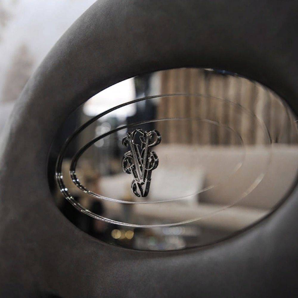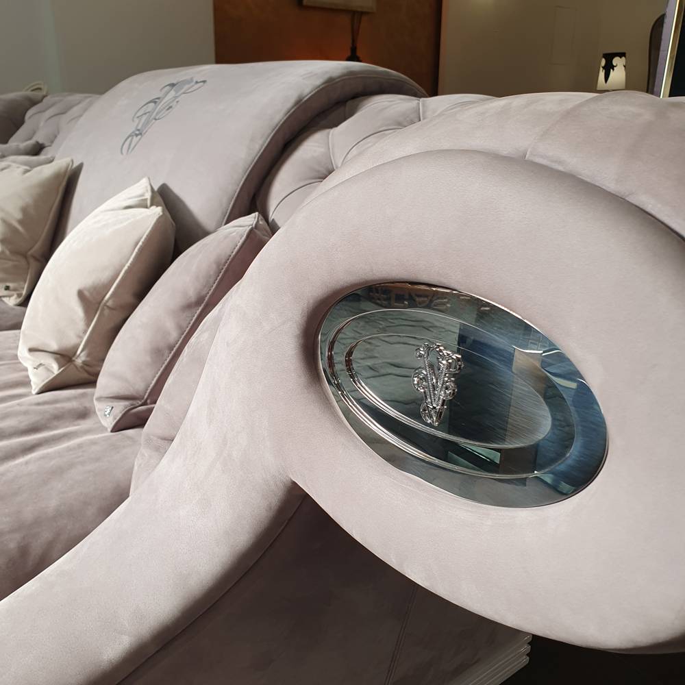 Структура из массива сосны, наполнение – пенополиуретан, Memory Foam и перо. Обивка кожей или ткань с отделкой капитоне на спинке и подлокотниках. Центр спинки выделен декоративной вышивкой. Фронтальная часть подлокотников украшена вставками из полированной стали с гравированными логотипами Visionnaire из хромированной латуни. Основа из оргстекла толщиной 20 мм., которая заметна только при включенной сенсорной LED-подсветке.