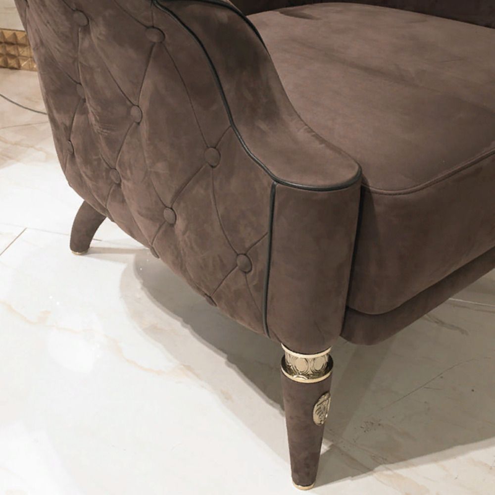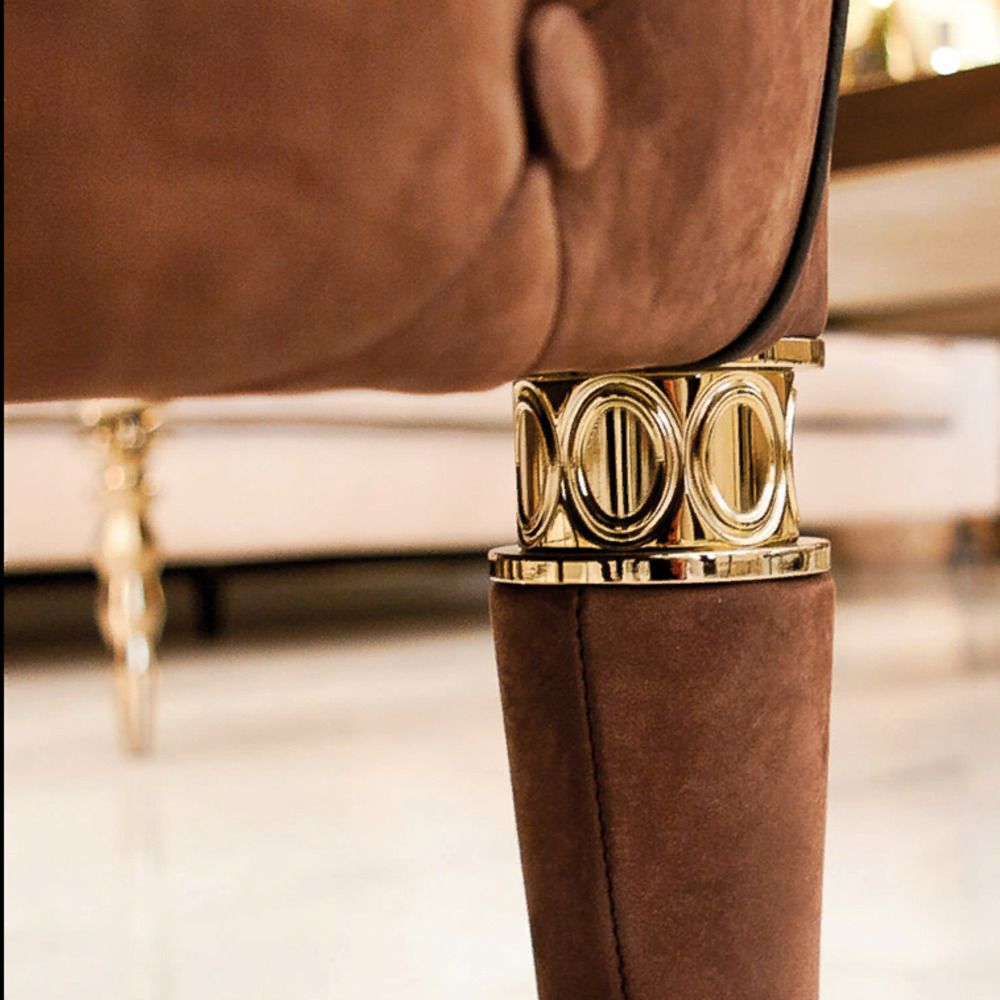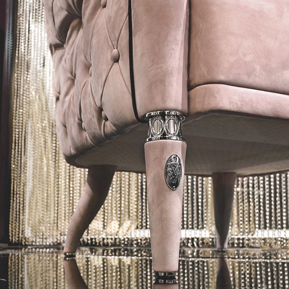 Структура из массива бука. Наполнение – полиуретан разной плотности, с акриловой подкладкой. Обивка – натуральная кожа, внешняя сторона ручек и задняя сторона спинки простеганы в технике капитоне. Металлические ножки кресла обтянуты кожей. Передние ножки украшены кольцами из точеной латуни с гравировкой овальной формы и медалью с логотипом Visionnaire.