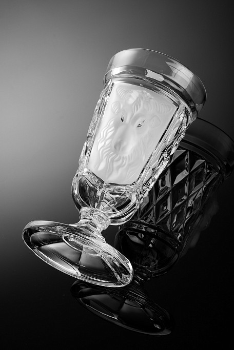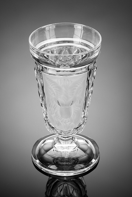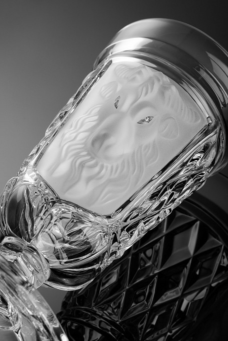 Уникальное изделие ручной работы выполнено в традициях русских потешных кубков середины XIX столетия и представляет собой точную копию кубка, который выпускался на хрустальной фабрике Мальцова еще до революции. Его секрет заключается в эффекте преломления: как только в кубок наливается жидкость, выражение морды сердитого животного меняется, становясь довольным и добродушным.