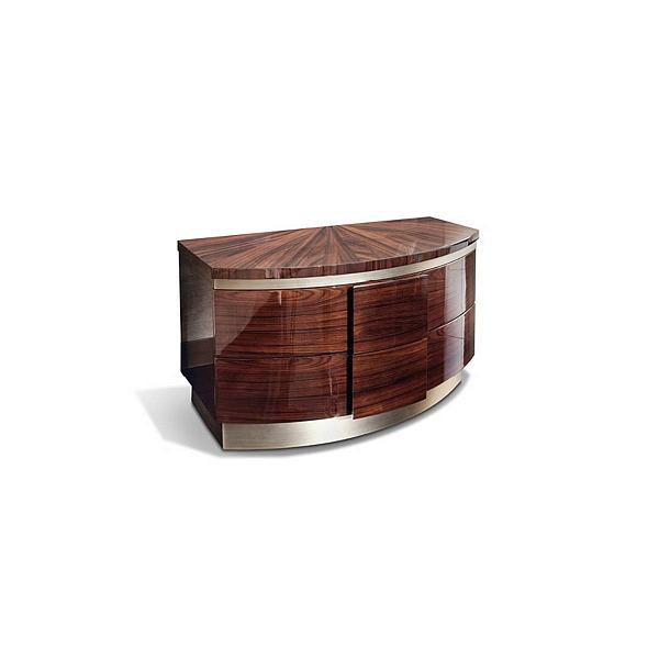 Прикроватная тумбочка Coliseum Giorgio Collection из коллекции Coliseum с двумя выдвижными ящиками. Декорирована металлическими вставками, столешница оформлена геометрическим узором из расходящихся лучей.