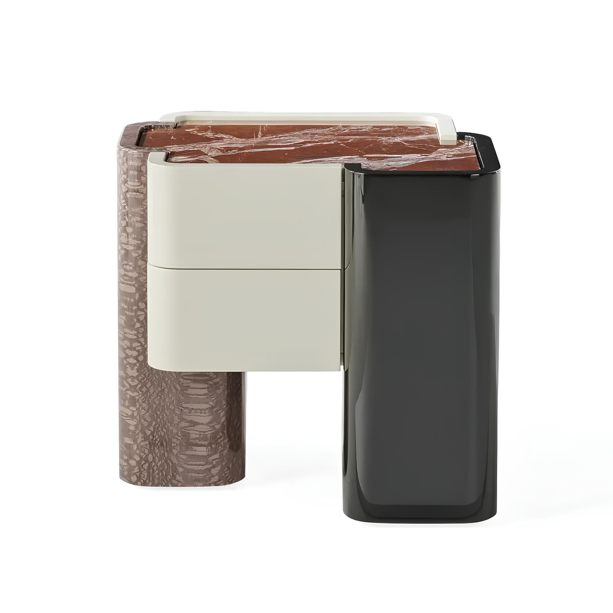Прикроватная тумбочка Misitu от Roberto Cavalli Home Interiors — это утончённый союз выразительности и функциональности, воплощённый в компактной архитектуре прикроватной тумбы. Вдохновлённая природными формами и архитектурной асимметрией, она превращает прикроватный аксессуар в самостоятельный объект стиля, где каждый элемент служит продолжением философии бренда: смелость, роскошь и внимание к деталям.