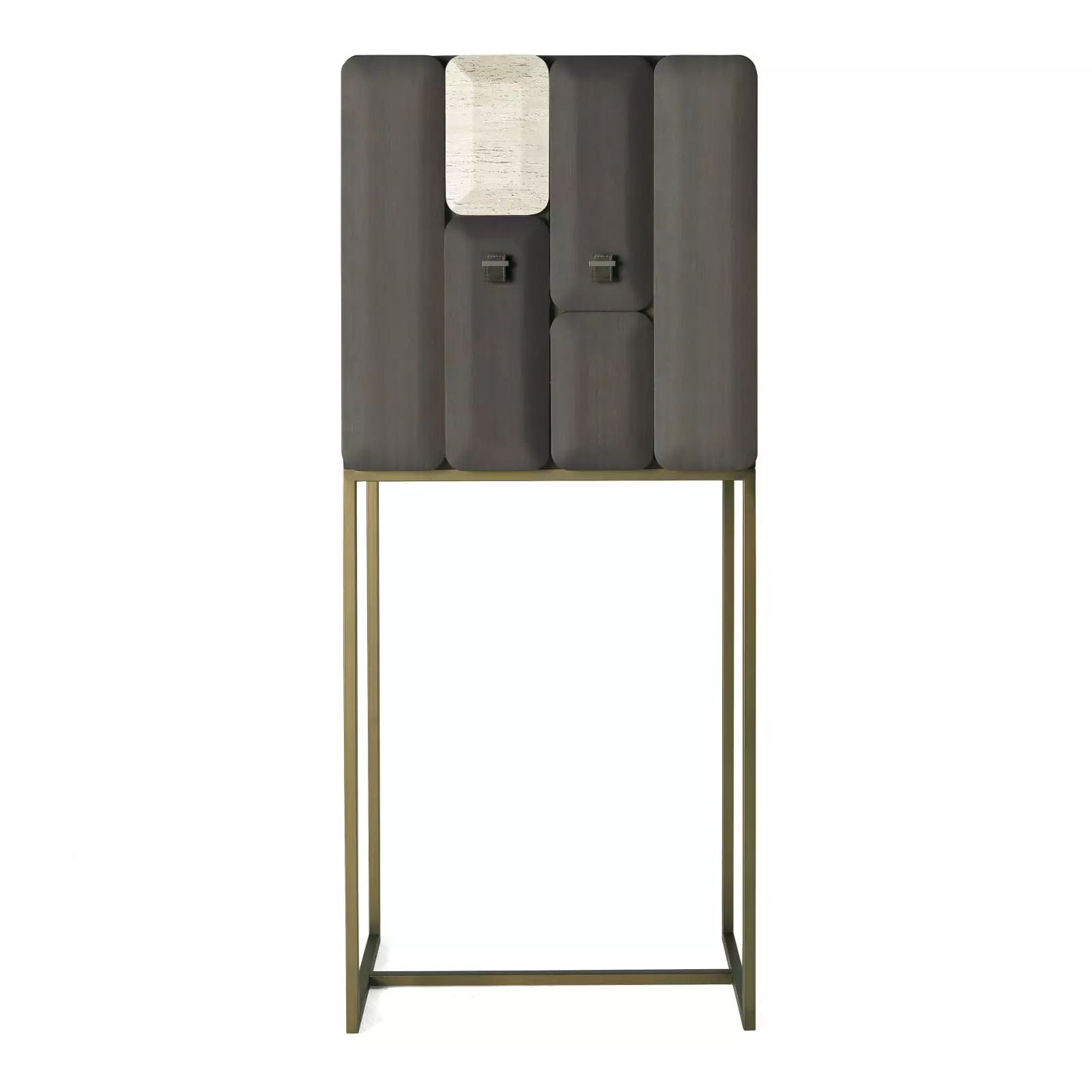 Металлическое основание с отделкой Brushed Bronze завершает композицию, придавая шкафу устойчивость и благородное сияние.