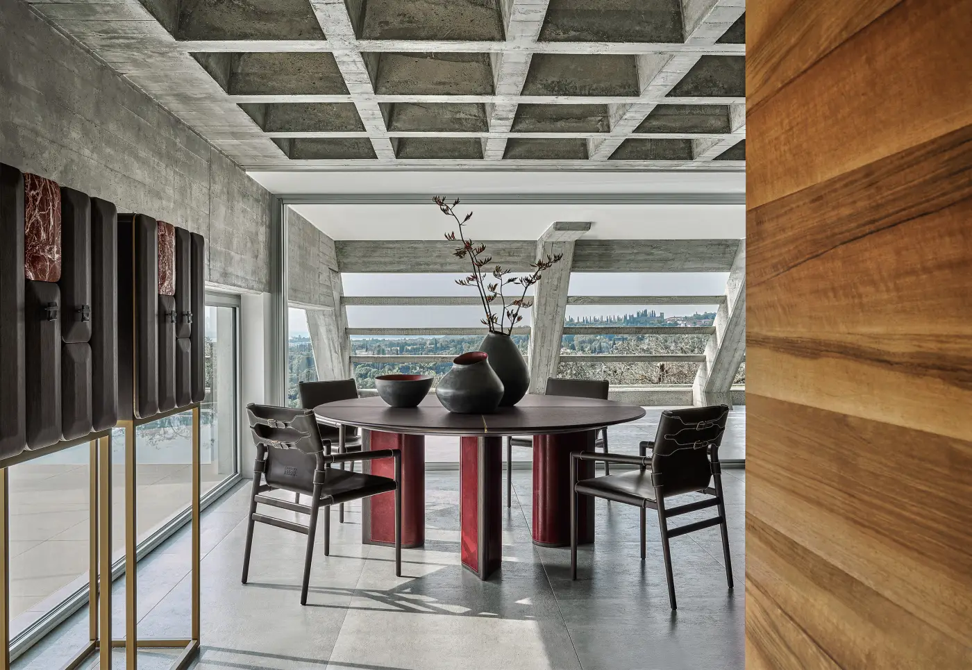 Эта модель воплощает философию урбанистической роскоши, присущую Gianfranco Ferré Home. Геометрическая строгость уравновешена богатством текстур: прохладный блеск металла, мягкость кожи, глубина дерева и сияние мрамора создают многослойный и харизматичный образ.