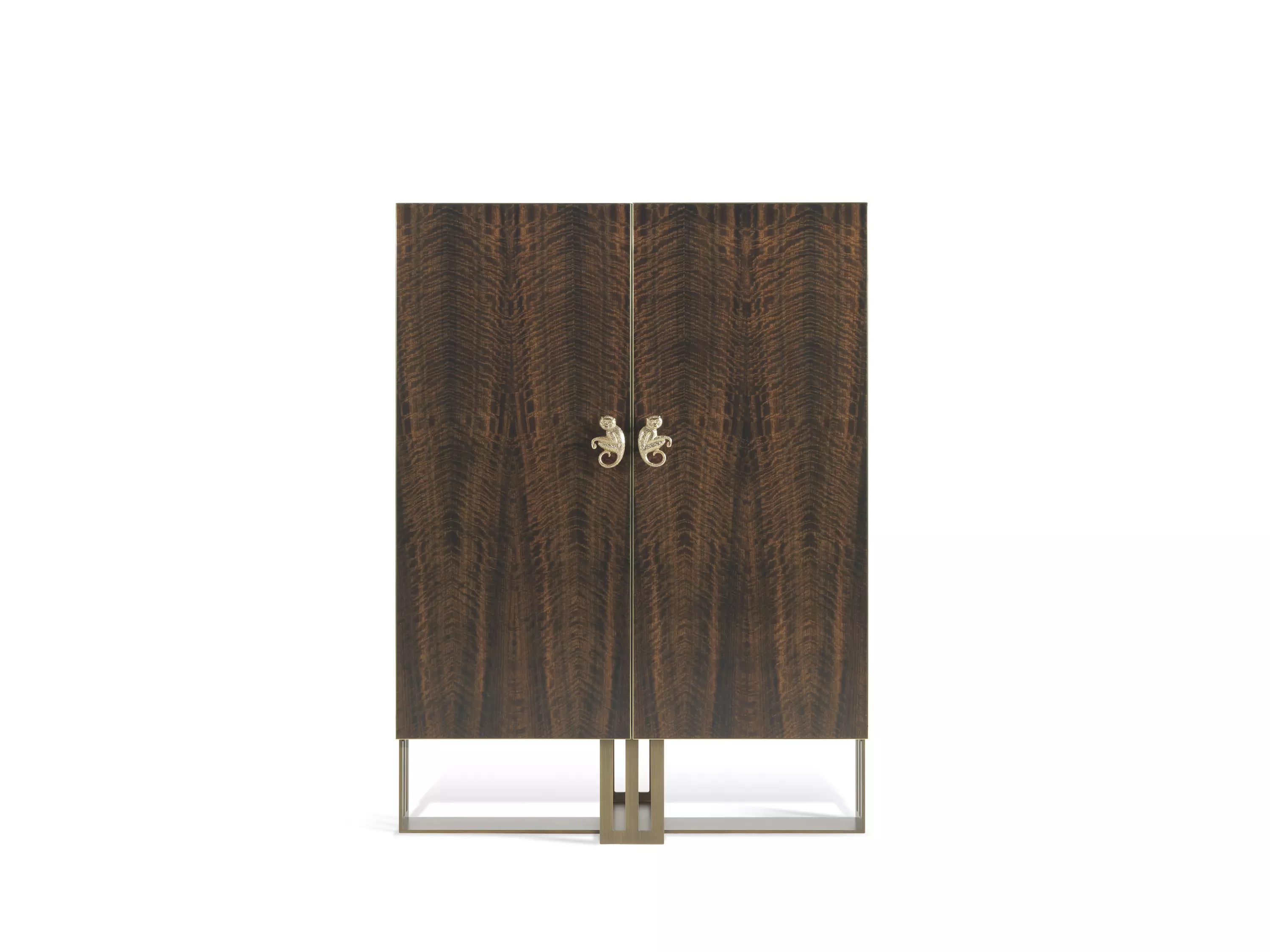 Элегантные линии барного шкафа Klee скрывают удивительное множество оригинальных деталей. От маленькой обезьянки, символа творческой вселенной Etro, до металлического основания из патинированной бронзы с инициалами бренда и ценного дерева эвкалипт фризе, которое придает всему изделию естественный шарм.
