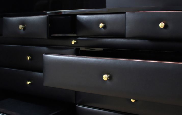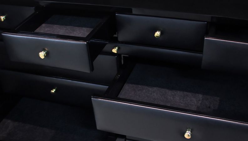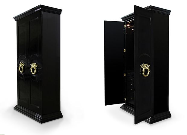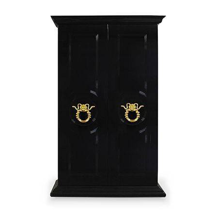 Попадаете под чары Города любви с парижским шкафом. Напоминающие волшебные двери, которые выстилают очаровательные улицы Парижа, большие витиеватые двери украшены золотыми, грешными змеиными ручками. Интерьер выложен великолепной тканью и имеет шесть лакированных ящиков.