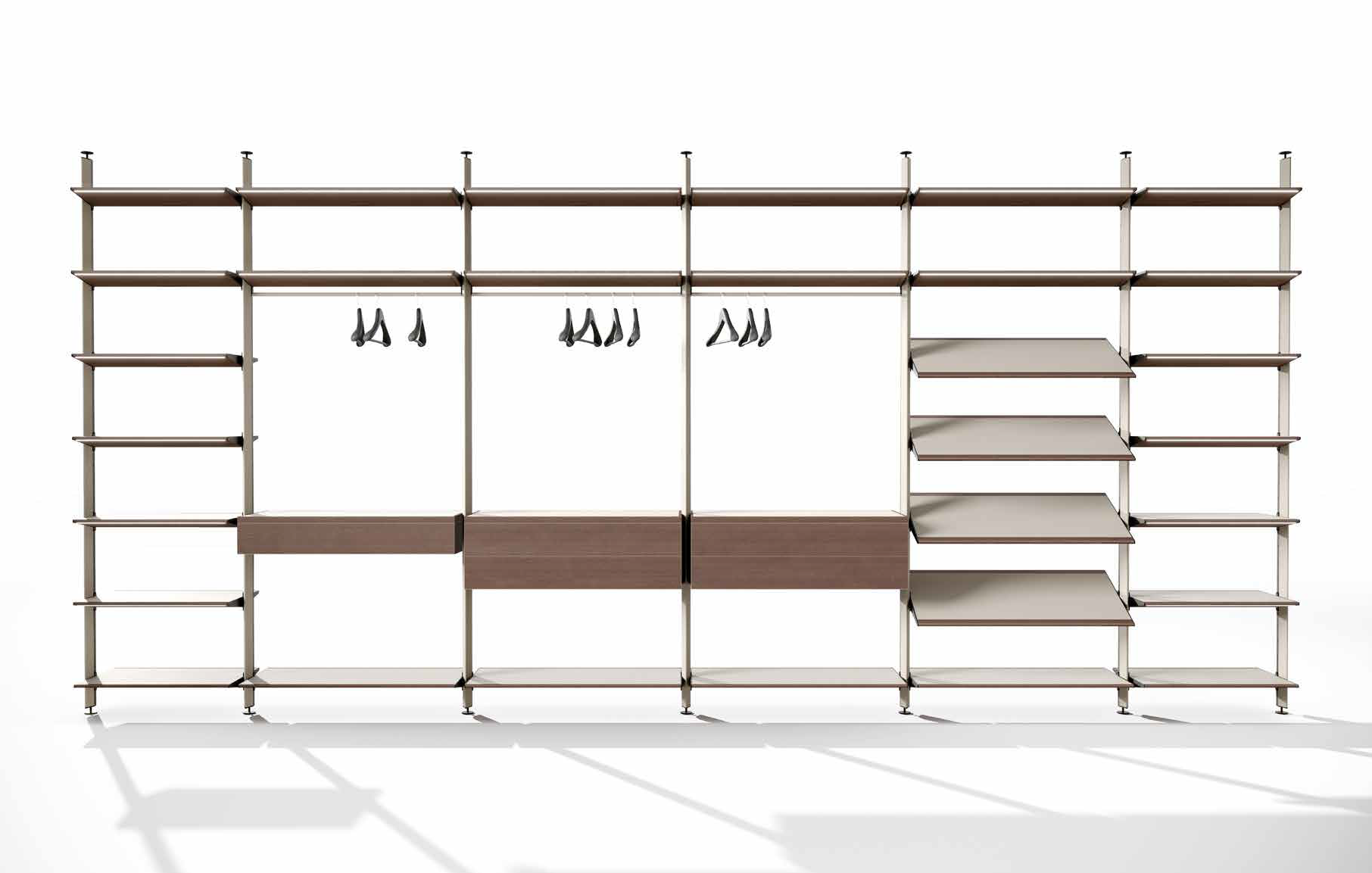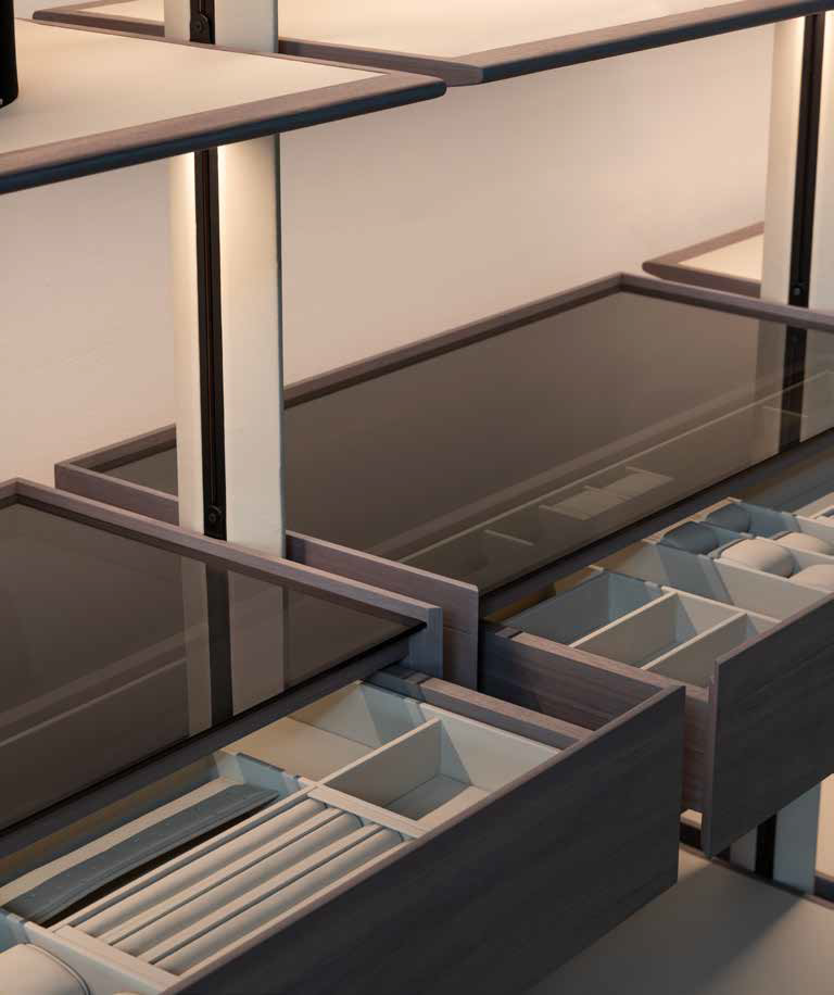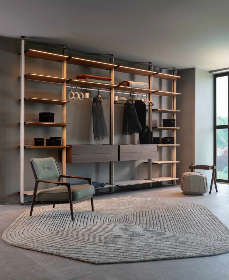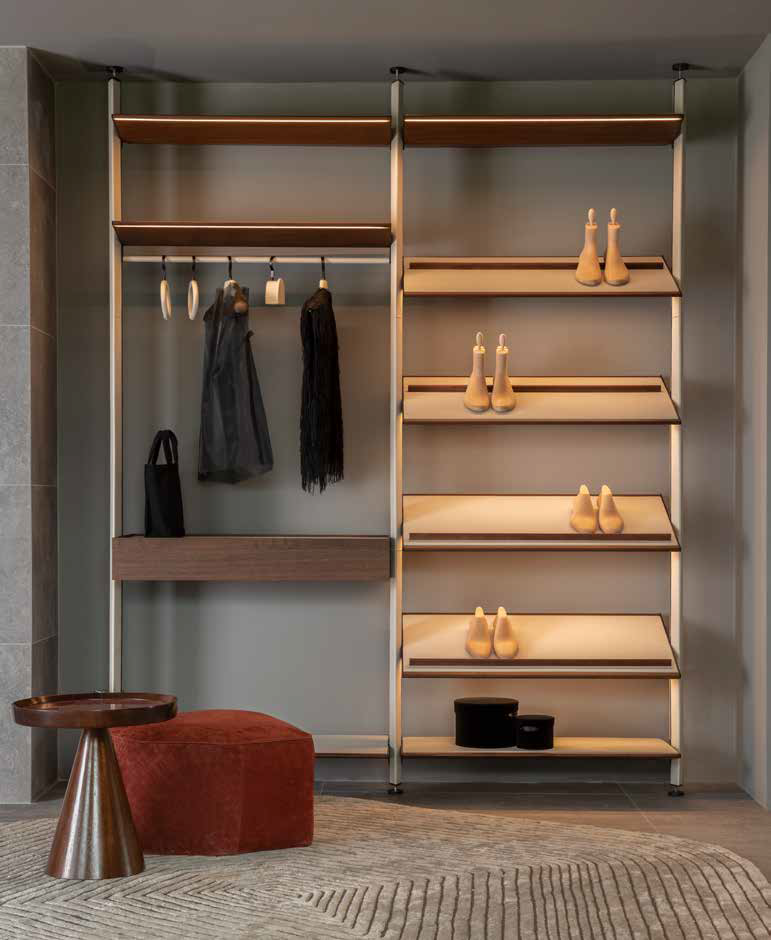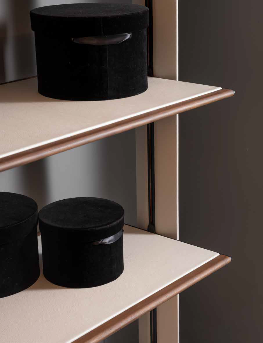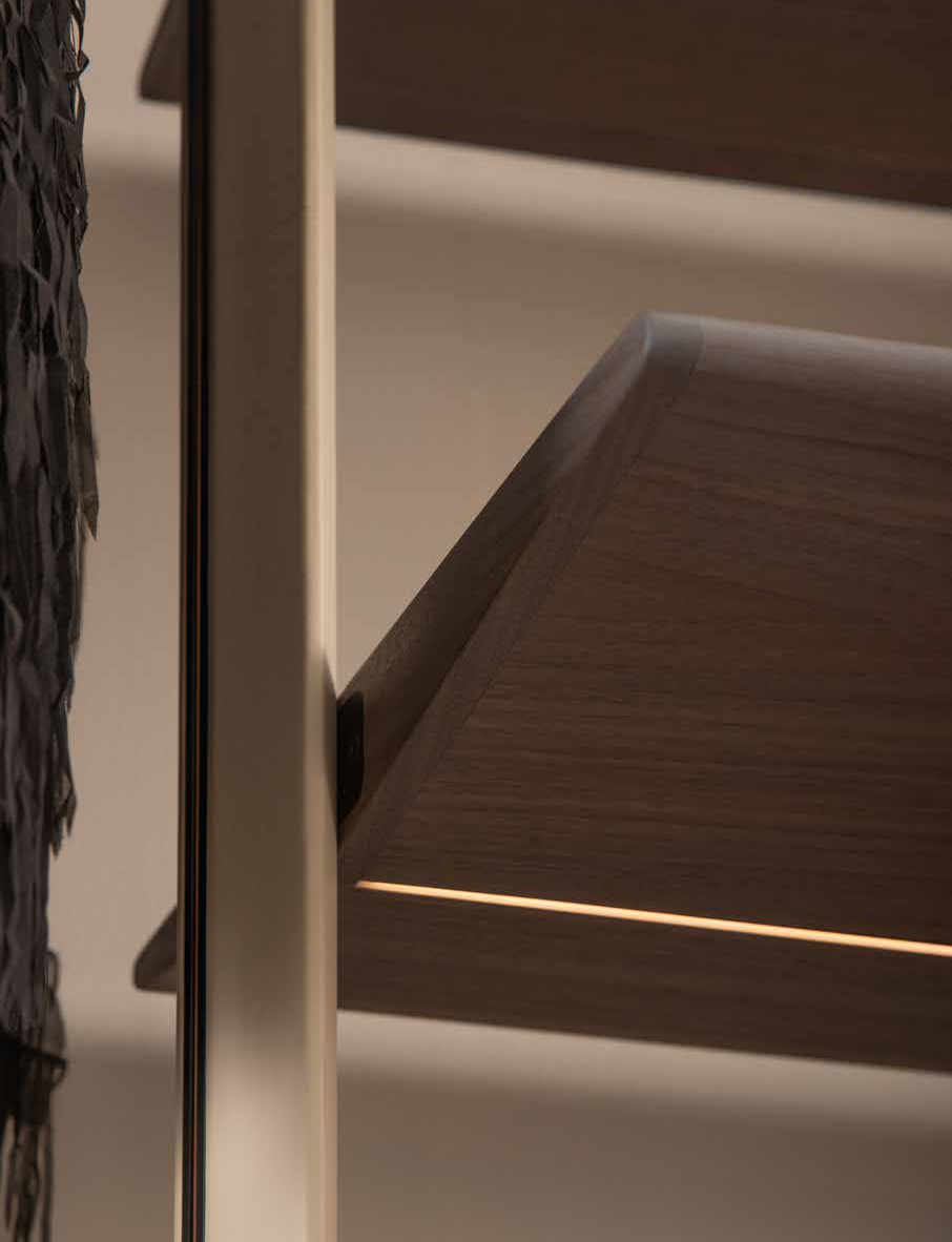 Дамы и господа, это ваше самое уютное место, где вы сможете найти удобные вещи на каждый день. Идеальное сочетание дизайна и функциональности, все на виду, выполнено из неподвластных времени материалов и по вашему эксклюзивному заказу. Светодиодная подсветка на полках отмечает и напоминает вам обо всех ваших предметах, о полке для обуви, предназначенной для него и для нее, о кожаных ящиках, в которых вы можете хранить свои драгоценные аксессуары. Стойки имеют металлическую сердцевину, обеспечивающую скрытый электрический проход, что дает полкам и комодам возможность освещая пространство гардероба, вы создаете волшебную атмосферу.