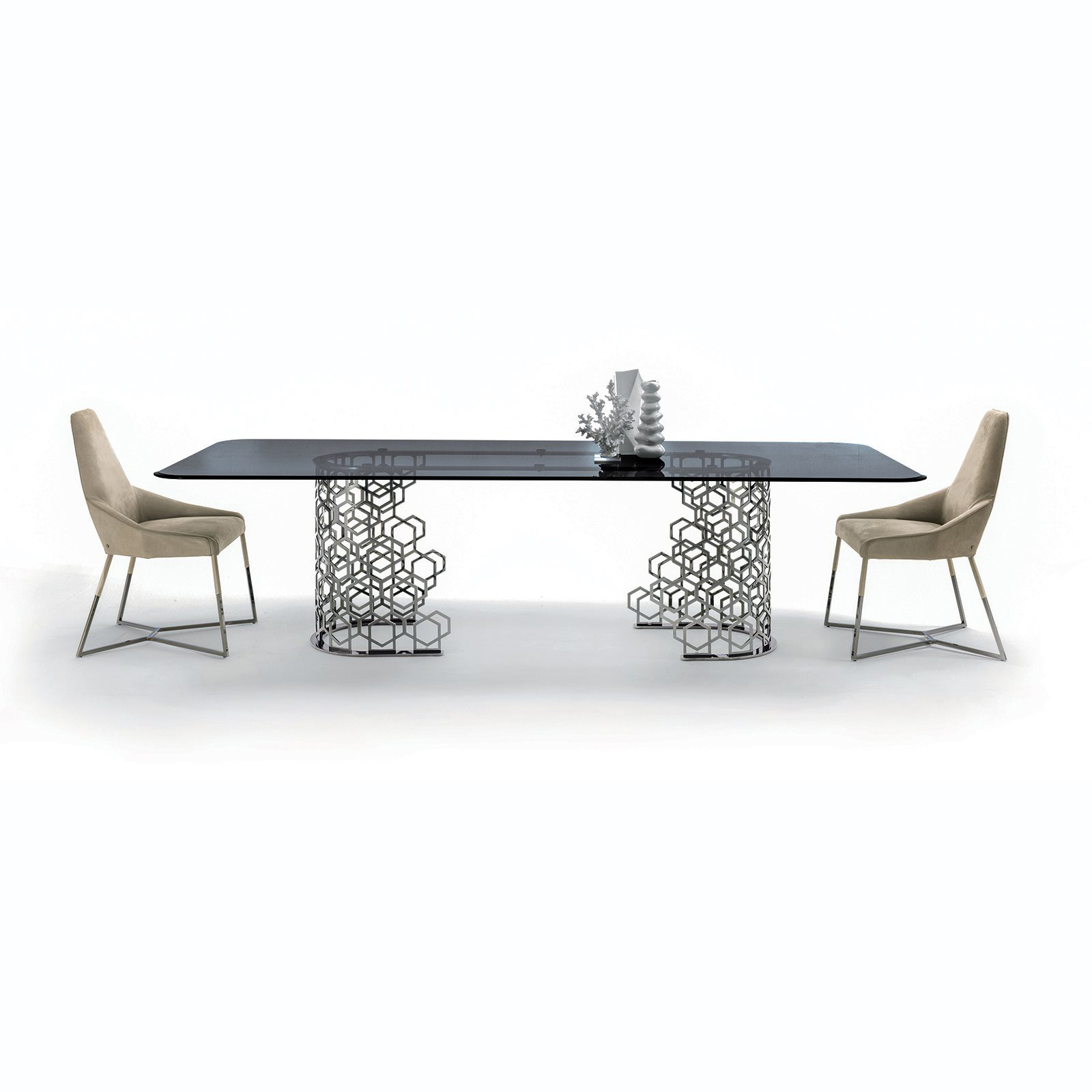 Стол Manfred от Longhi — это исключительное сочетание инновационного дизайна, высококачественных материалов и безупречного исполнения. Его выразительная конструкция с уникальным декором "Sequence", выполненным методом лазерной резки, подчеркивает гармонию между искусством и функциональностью.