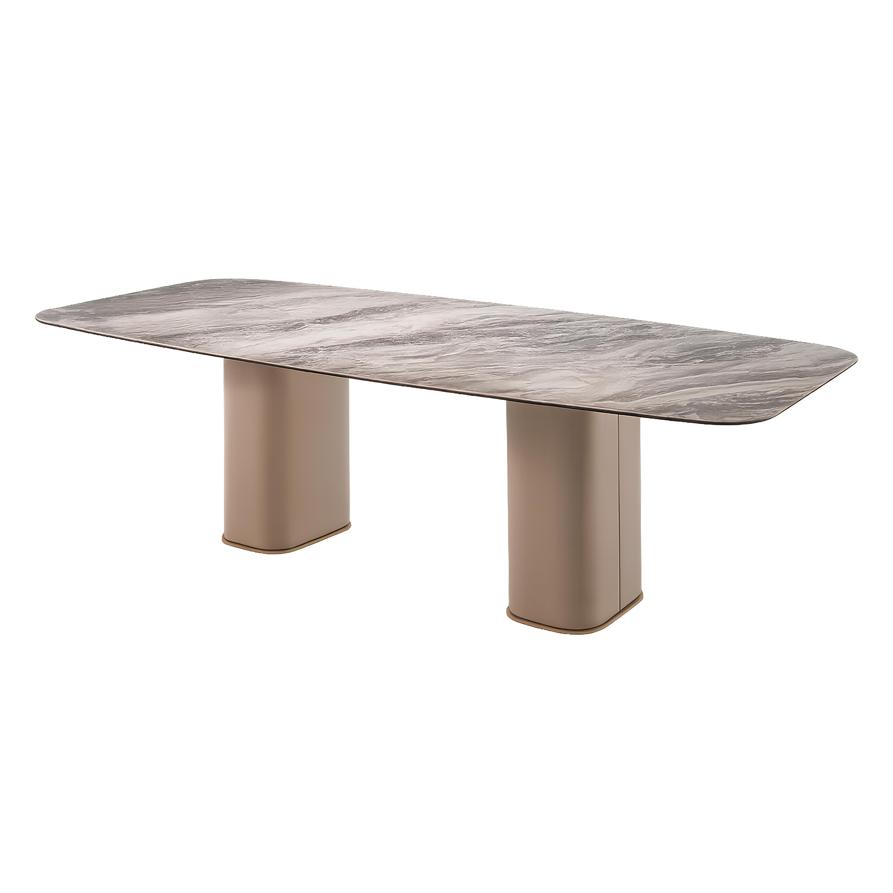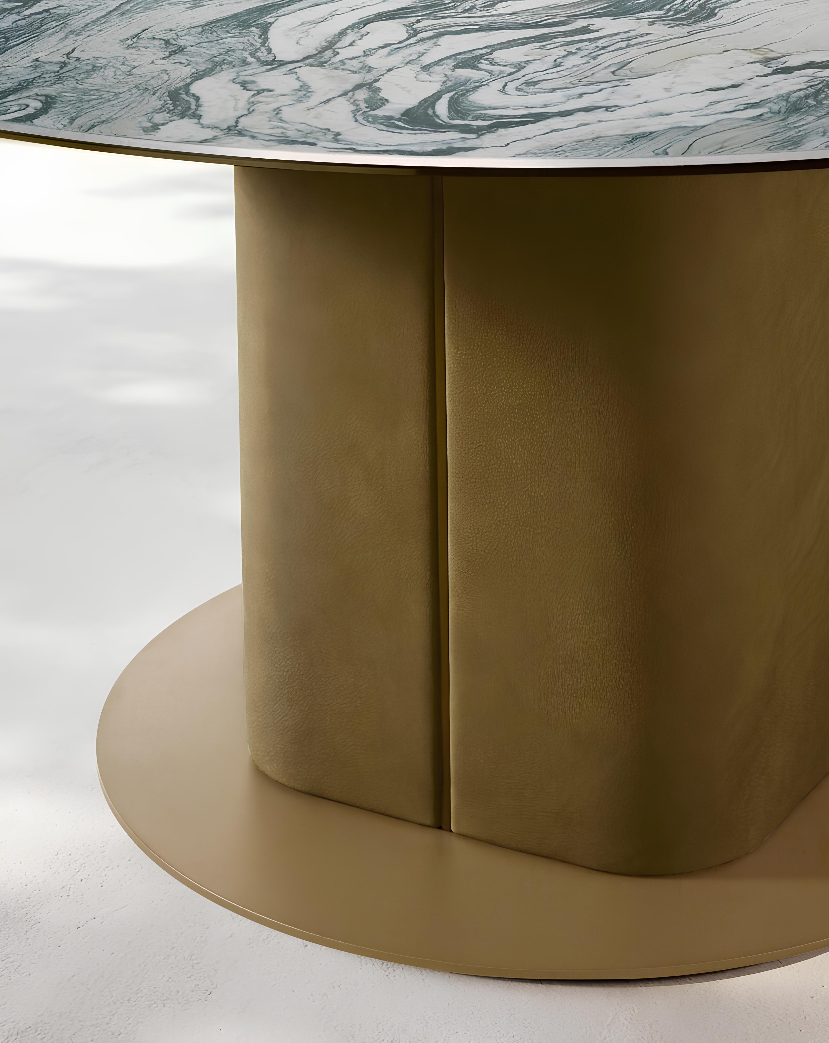 Обеденный стол Milos от Gamma Arredamenti — это результат многолетнего опыта Gamma Arredamenti в работе с кожей и глубокого понимания ремесленной эстетики. Бренд, известный своей филигранной обработкой кожи, переносит своё ДНК в новую категорию — предметы для столовой, создавая мебель, в которой чувствуется не просто дизайн, а подлинная культура изготовления.