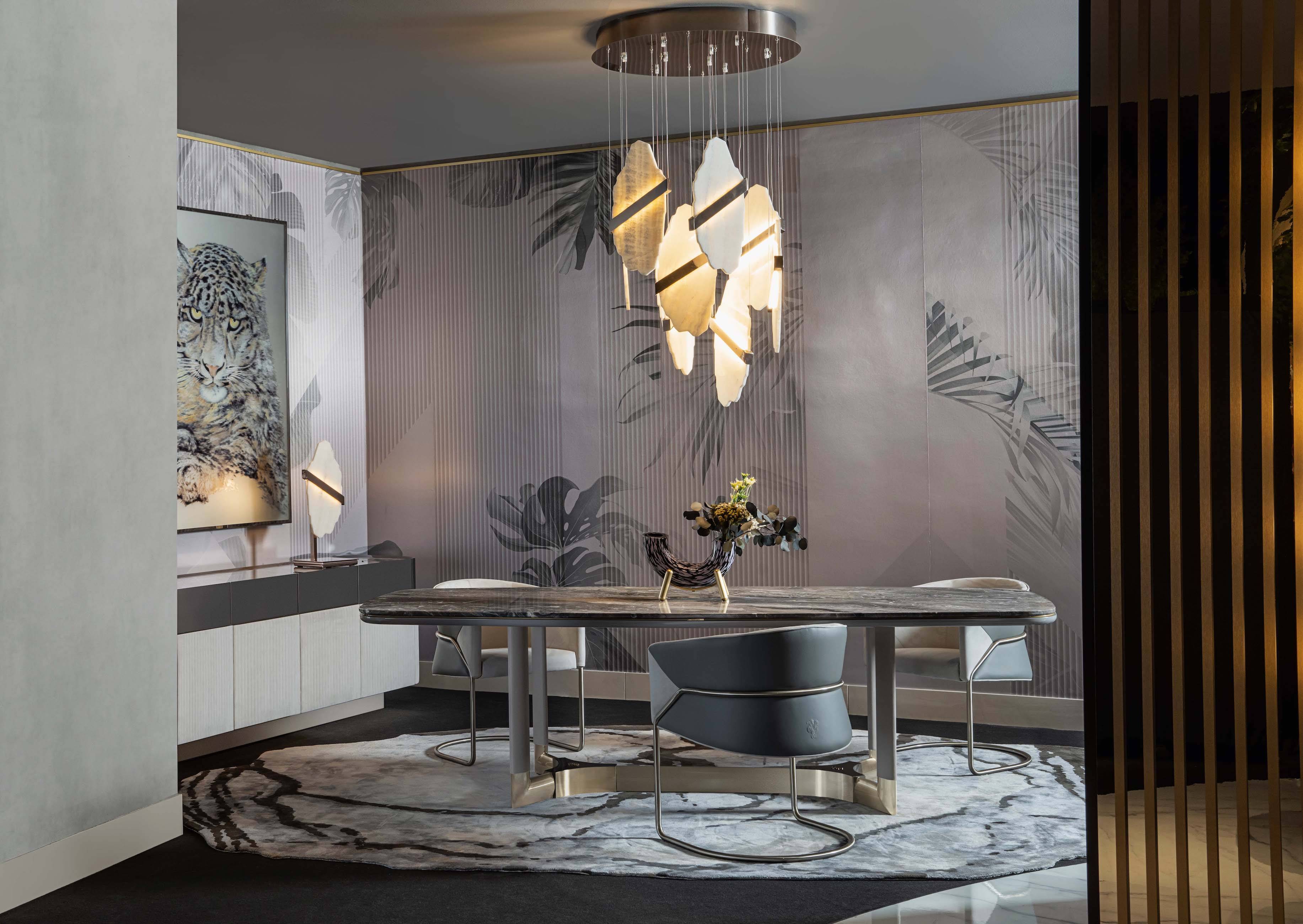 Прямоугольный обеденный стол с мраморной столешницей Morgan Visionnaire из коллекции Starlight 2022.