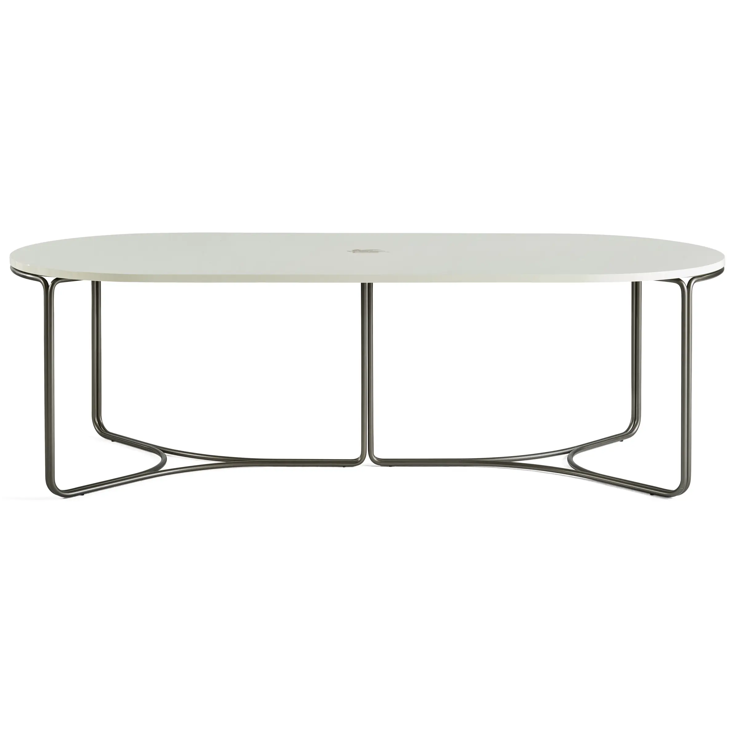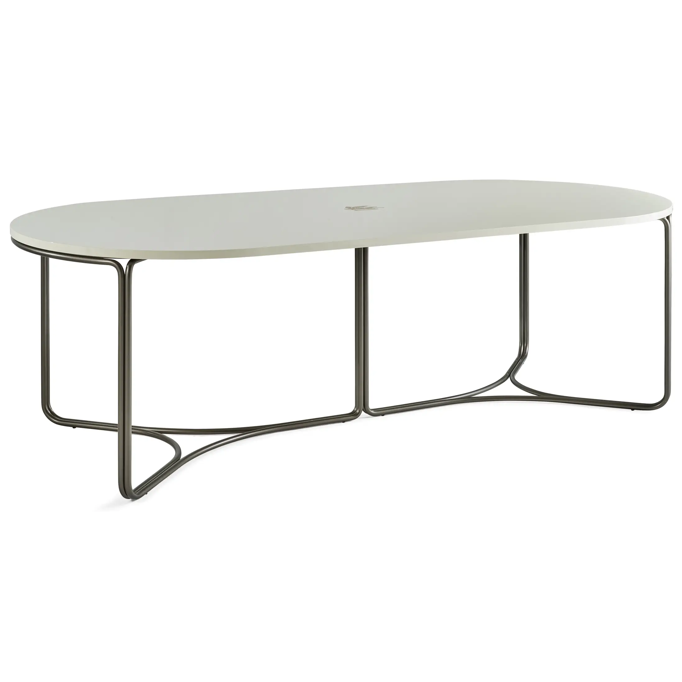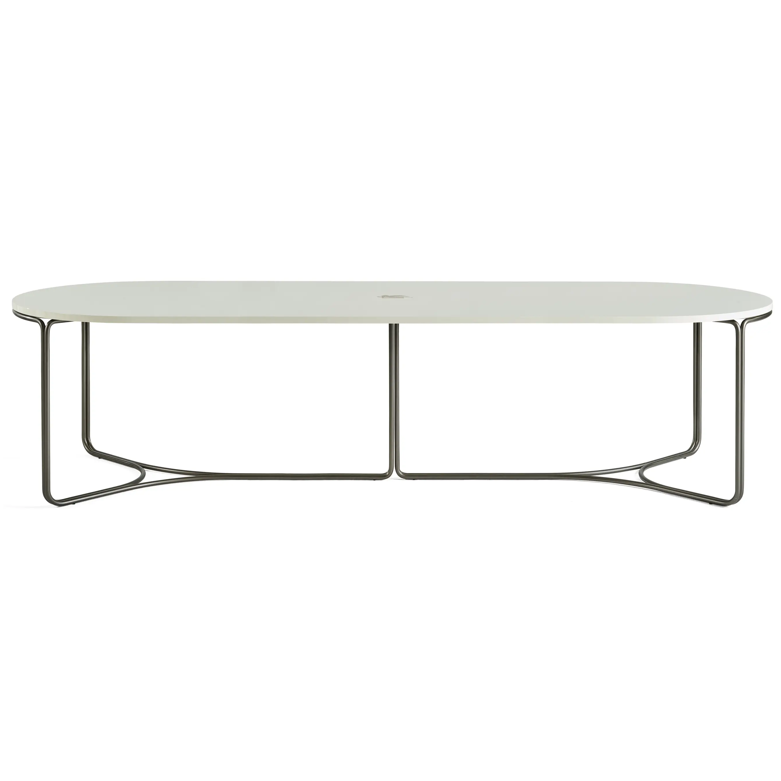 Главная особенность стола — вытянутая овальная столешница. Это придаёт композиции больше пространства, удобства и лёгкости взаимодействия между собеседниками.